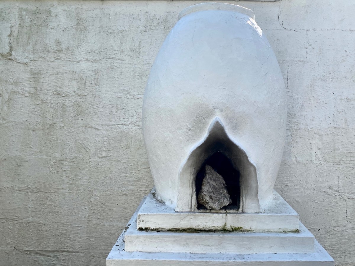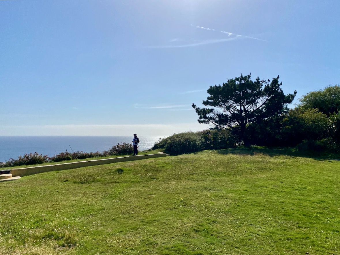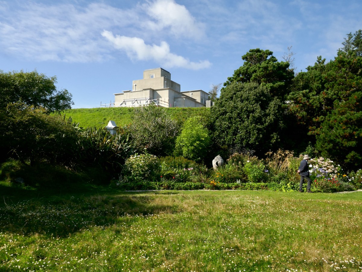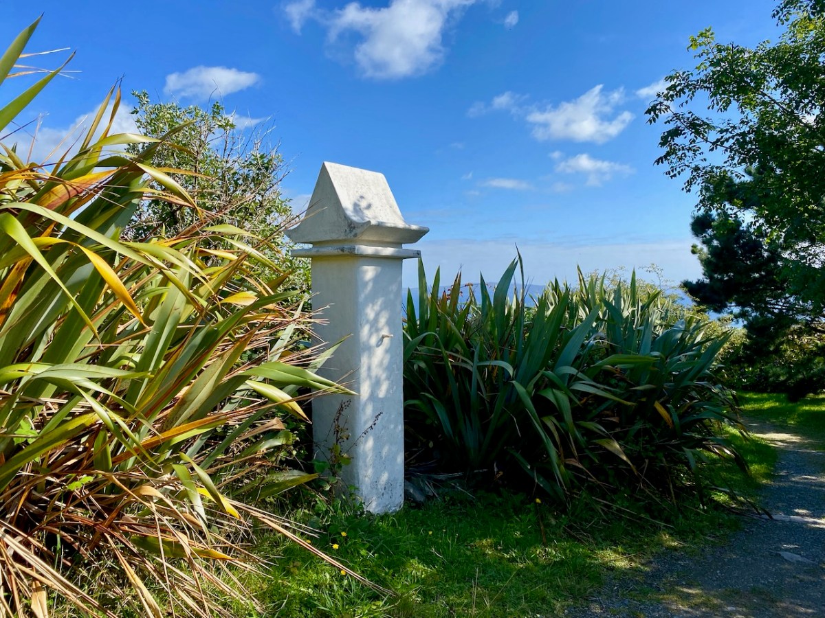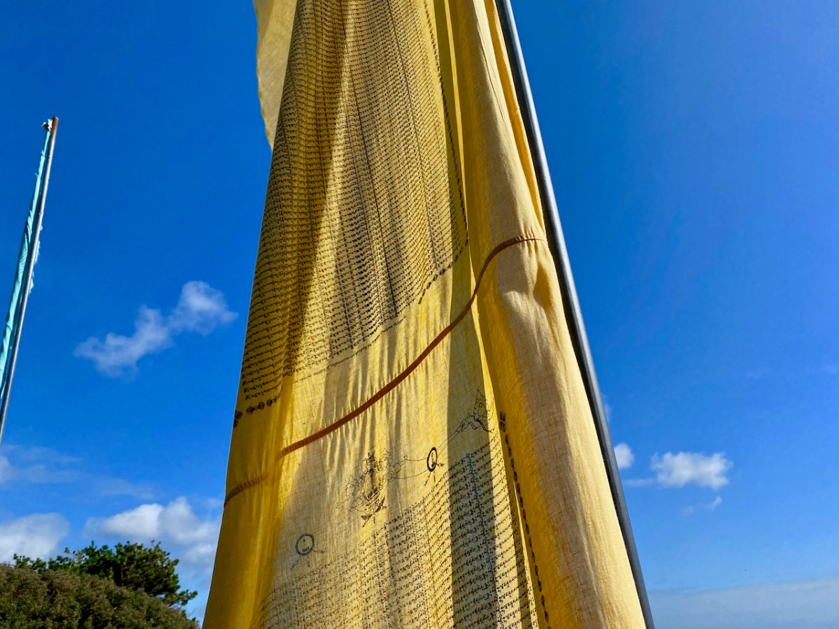 The Centre grounds already display a traditional ‘Stupa’. Originally, stupas stared out as sacred mounds or domes which were used to house the relics of the Buddha. Now they are symbolic structures which give special significance to their location, as here. They are always decorated with colourful prayer flags which serve to bless the surroundings. I can’t help seeing these flags in the same light as ‘rag trees’ often found by holy wells in Ireland. The processional way to the stupa is lined with tall prayer banners. And the whole stupa site also enjoys the wonderful views to the ocean.