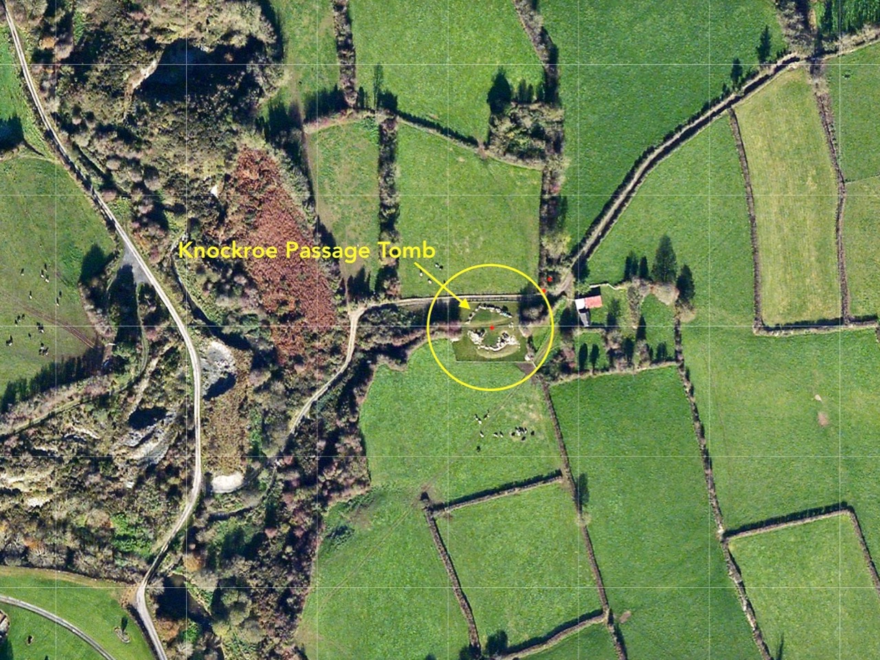 To find this gem (known locally as The Giant’s Grave – Finola’s post today describes another one!), you have to turn off the M8 at Cahir, and follow the N24 and N76 towards Ninemilehouse. If this sounds familiar, it’s because we also followed this route when we visited the Killamery High Cross, but this time turn before Ninemilehouse, at Garranbeg, and cross over the River Linguan, then follow the river to the County border (Tipperary / Kilkenny) where you will see signs to Knockroe Passage Tomb and Knockroe Slate Quarries. After your visit it’s easy to join the M9 at Knocktopher and carry on up to Dublin. It will add a little more than half an hour to the journey (plus the many hours you might want to spend exploring the fascinating passage tomb).