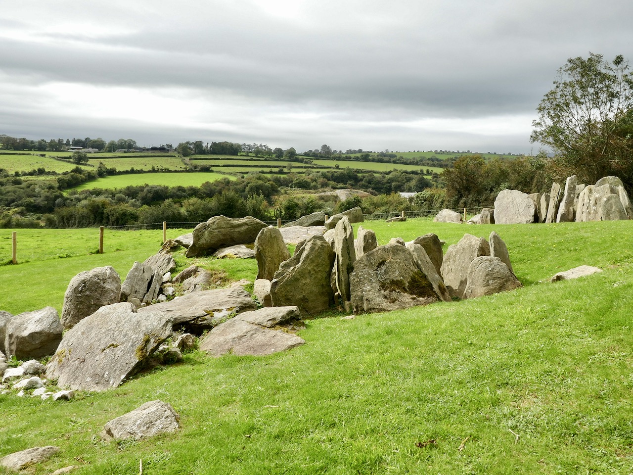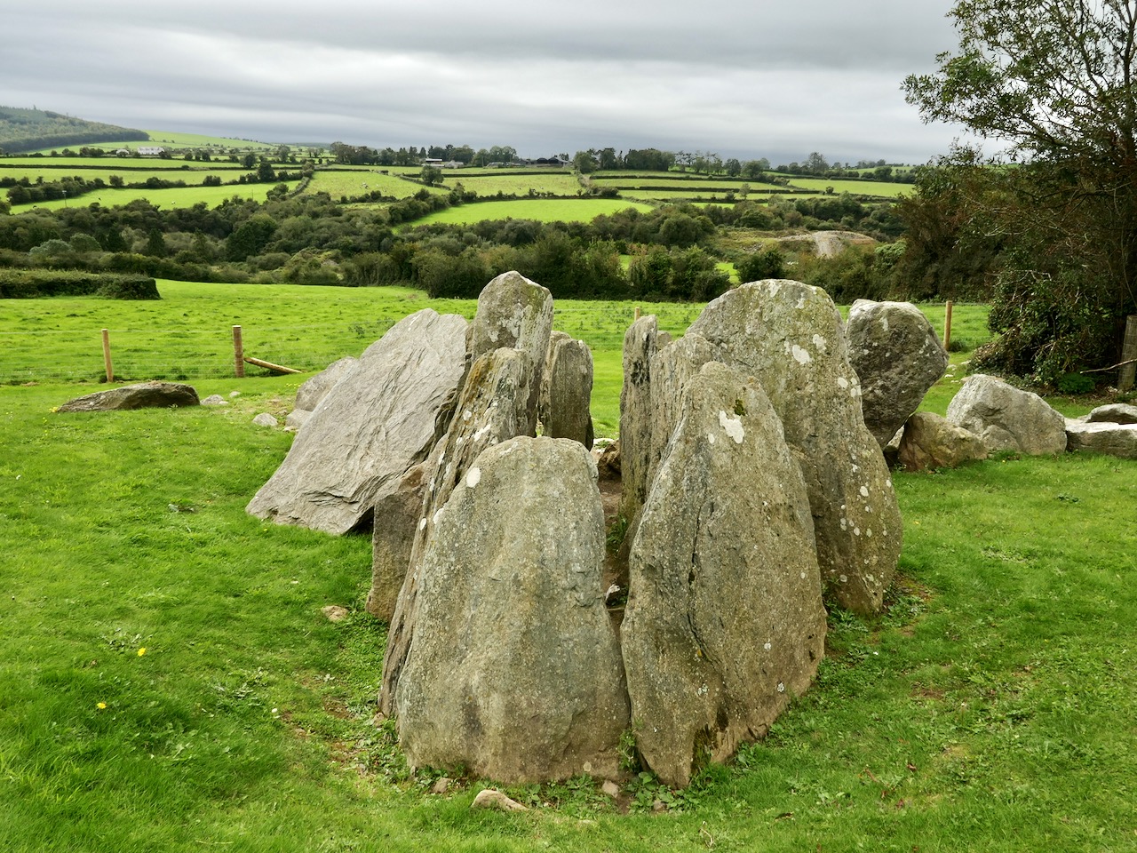 But let’s turn our attention to the art at Knockroe. It’s what makes it so special. It’s not as spectacular as the larger examples in the Boyne Valley or Loughcrew (you might think of Knockroe as a ‘country cousin’) – but it is their equal in its scope and variety. And – what we really liked – you can have the place all to yourself! There is no visitor centre, no queueing or paying – nothing to spoil the ambience. It is always freely accessible, and we didn’t see a soul while we were there. It is, of course, merely a skeleton of what it once was – five thousand years ago – but that doesn’t detract from its allure. It’s a place imbued with things we don’t understand, or can only guess at – left behind for us by our distant ancestors. And, hopefully, we will keep it safe for the future.