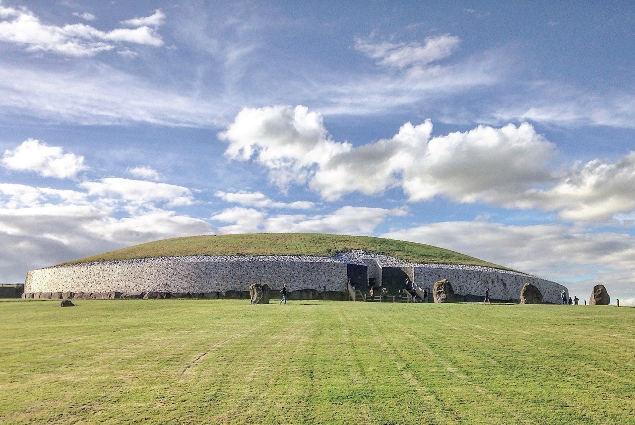 The Knockroe site is endlessly fascinating. O’Sullivan’s excavations revealed a quantity of smaller quartz boulders which appear to have collapsed from a possible quartz facing reminiscent of Professor O’Kelly’s reconstruction of the Newgrange mound (image below by Tjp Finn via Creative Commons):