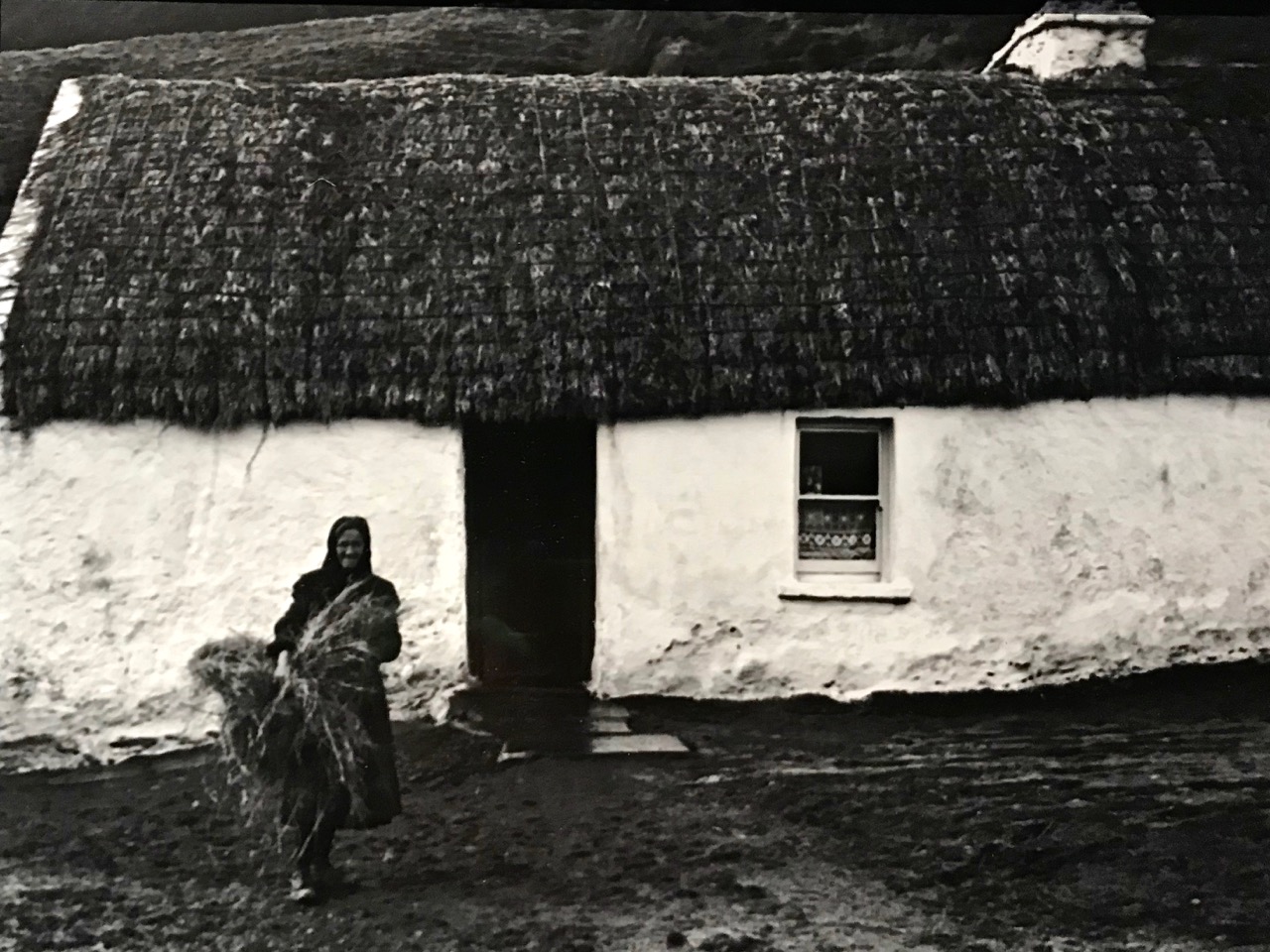 . . . My grandparents never took the electricity. They didn’t act as though there was a lack. They carried on as they were, which is the prayer of most people. They lived in that house until they were carried out of it, one after the other. Because the twelve sons in the corners of the world couldn’t reach a verdict, the house was left to itself. The thatch started sagging in two places like consternated eyebrows, brambles overtook the potato ridges and came up the garden, and soon enough in under the front door. Soon, you couldn’t see the house from the road. Soon, too, the bits of hedging Doady had stuck into the ditch to camouflage the broken Milk of Magnesia bottles grew to twelve feet and fell over and grew along the ground then, marrying thorn bushes and nettles and making of the whole a miry jungle. When the roof fell in the crows that were in the chimney came down to see the songbirds sitting in Ganga’s chair eating Old Moore’s and that way becoming eternal. When grown a man, one of the Kellys took out the kitchen flagstones for a cabin he was making. He took out the stone lintel over the fireplace after, and a year later came back for half the gable when he needed good building stones for a wall.