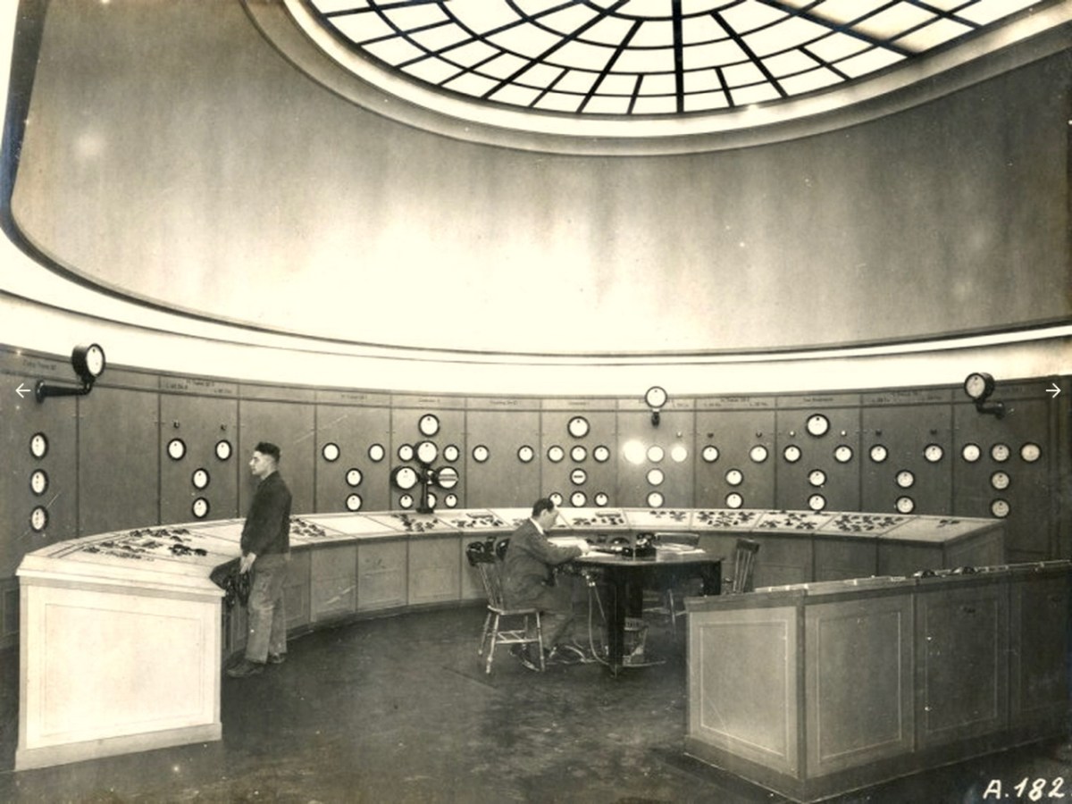 In my recent posts I have set out a brief history of how the new State became electrified – and how this affected the urban and rural ways of life in Ireland. An important part of the story was the building of the hydro electric power station at Ardnacrusha, on the River Shannon, between 1925 and 1929. That’s the original control room, above, unaltered since construction – there’s not a screen in sight! Most of the works of the station are now handled elsewhere using screens and keyboards rather than dials and switches. This site became the nerve centre for the electrification of Ireland and the National Grid was established in tandem with the project.