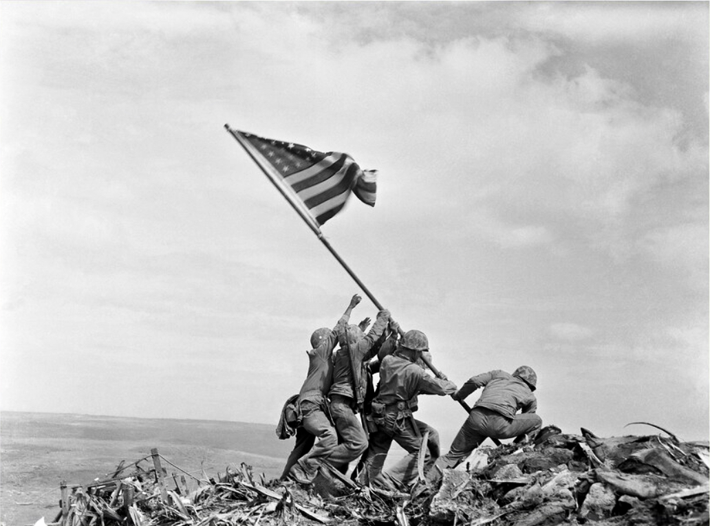 The coming of electricity across Ireland opened up markets for retailers to vend a host of innovative gadgets. This mobile electricity showroom from the 1950s (ESB Archives) covers the gamut of lighting, cooking, refrigerating, water supply to sinks using pumps, milking machines and labour-saving devices for farms. In a future post I want to focus on Rural Electrification, which was a long haul: taking poles and wires out into the extensive hinterland. This was – arguably – the most heroic part of the process of electrification, and we can’t help wondering whether the following somewhat iconic ESB print of the first ‘peg’ being raised at Kilsallaghan, on 5 November 1946 was inspired by the famous Iwo Jima Victory photograph taken by Associated Press photographer Joe Rosenthal on February 23 1945 (lower pic). Both portray a moment of triumph.