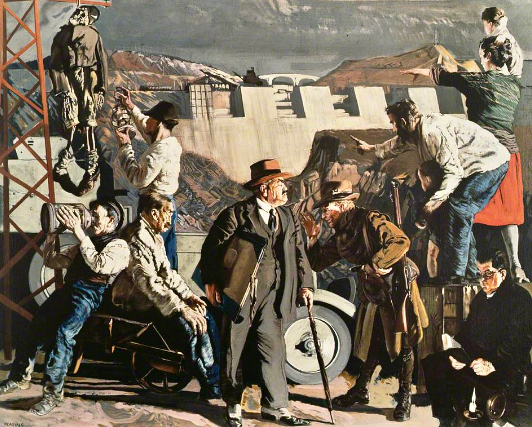 The documentary photo above looks like a scene from a science-fiction film: it’s the control station at Ardnacrushsa, shortly after the completion of the project. This, and many other of the illustrations which I will refer to, are taken from the excellent ESB Archives: I am very grateful to them for the use of these. The building of the huge dam and power station was documented in fine detail – and not just in words and photographs. The notoriously outspoken and visionary artist – Seán Keating – chose to record the accomplishments in his own medium, painting.