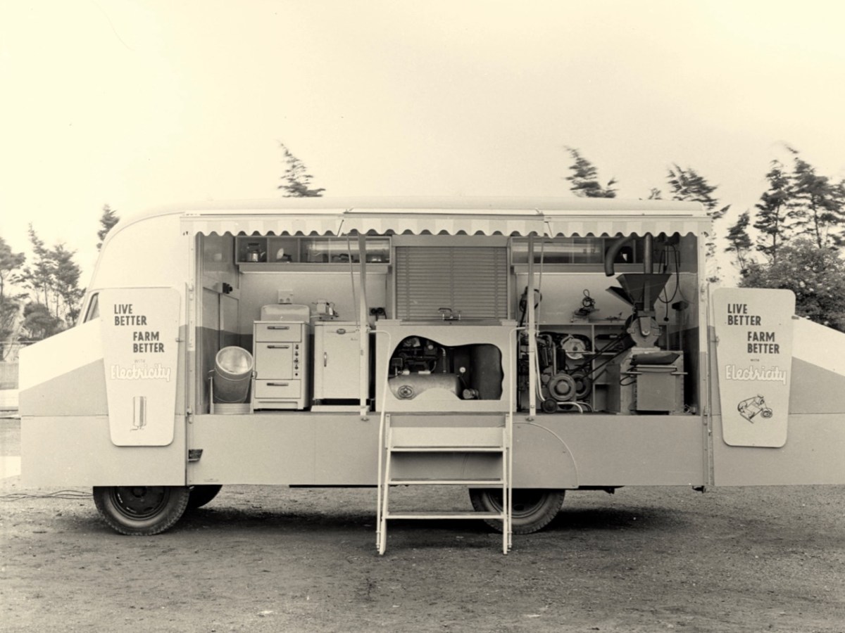 Above – posters from the time of the construction work at Ardnacrusha (ESB Archives). It was certainly the most exciting project in Ireland’s young days, and tourism was encouraged. Hand-in-hand with the major works themselves went a crucial publicity campaign to encourage people to embrace the coming of a readily available electricity supply to homes and businesses. The steps taken to try and ‘get the message across’ was an uphill task. Considerable funds were expended – and a large sales force garnered – to tour the country and persuade the population to buy into the project.