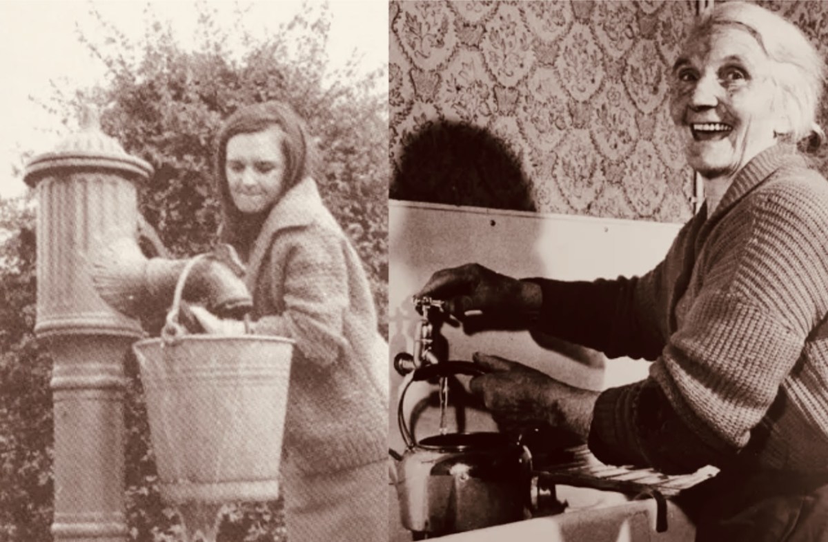 In the words of the Festival’s Director-General, Gerald Barry, it represented “a tonic to the nation” after twenty years in which Britons had successively endured economic depression, total warfare and acute post-war austerity. However, the Festival of Britain was the product of a left-wing government and it has been said that Churchill (then leader of the opposition) held the view that the whole venture was “three dimensional socialist propaganda”. I’m not sure that this is really true, as he attended the Festival and evidently spent all day riding up and down the escalators – then a novelty – with great delight! I also remember those escalators: we called them moving stairs (I still do – just like I still call the cinema the pictures). Finola clearly remembers riding on Ireland’s first moving stairs, in Roche’s Department Store, Dublin. But that was 1963; today’s post is all about the 1950s, but in rural Ireland.