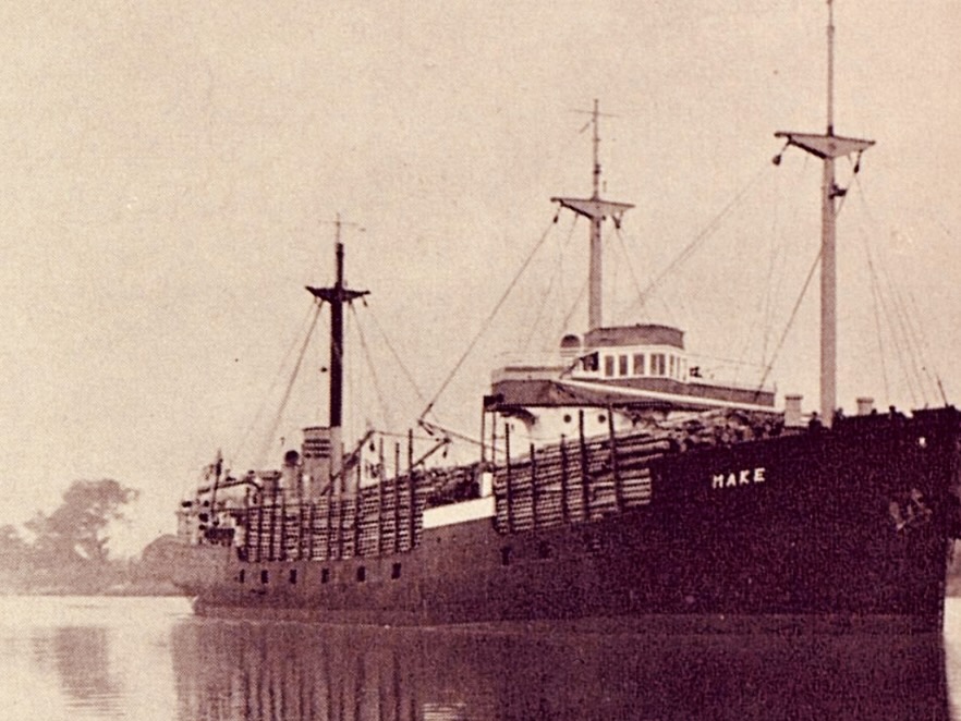 One of the largest consignments of poles from Finland: the MV Make navigates the Shannon Estuary c1950 ESB Archives
