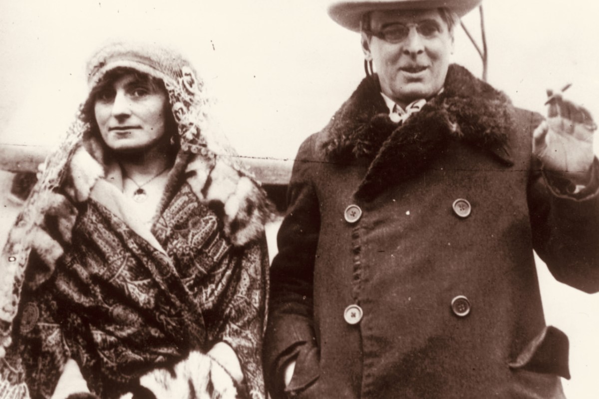 W B Yeats and his wife George Hyde-Lees heard the news that the Nobel Prize had been awarded to him on 14 November, 1923. The photograph above (courtesy Irish Independent) is said to be taken on that day. It’s also said that they celebrated by cooking sausages! The Irish Independent records: “Irish poet and senator, William Butler Yeats created history when he was awarded the Nobel Prize in Literature, the first Irish citizen to achieve such an accolade. The prize was awarded to Yeats ‘for his always inspired poetry, which in a highly artistic form gives expression to the spirit of a whole nation’.”