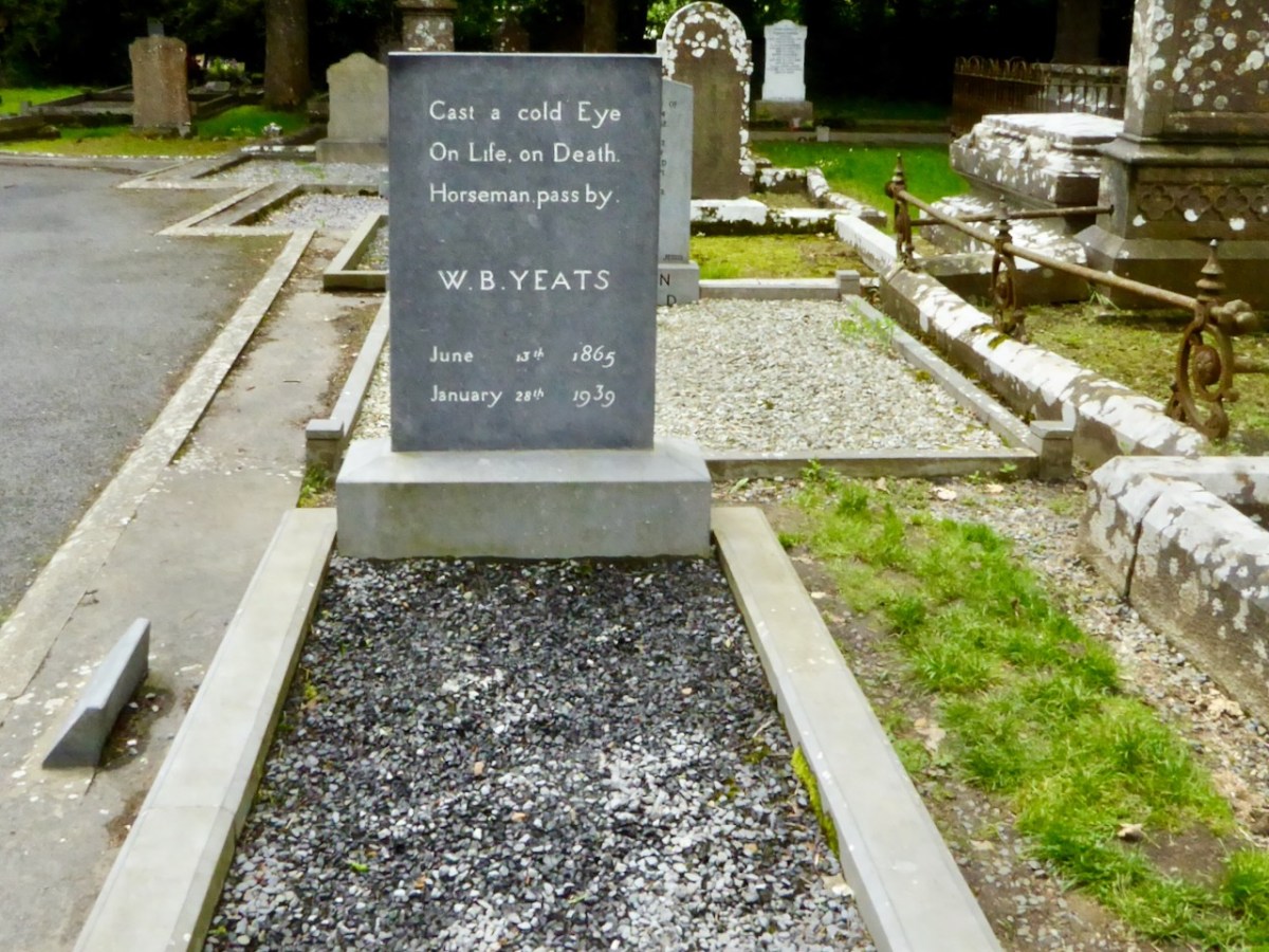 Yeats country – Benbulben and Classiebawn Castle (above). Finola took this fine view seven years ago, when we set out to visit the haunts of William Butler Yeats. We have to turn to Yeats now, as it’s exactly one hundred years since he was awarded the Nobel Prize for Literature – in December, 1923. I have carried a place in my heart for Yeats, ever since I was at Primary School on the Hampshire/Surrey borders, not far from Thomas Hardy’s Wessex. Yeats and Hardy were rivals for the coveted award – the final vote in 1923 was between the two of them: in the end, only two Nobel committee members voted for Hardy, and Yeats achieved the prize. The Guardian newspaper said that “…Mr Yeats is to be congratulated, almost without reserve, on lifting this substantial stake. He is a poet of real greatness; prose, too, he can write like an angel…”, however then arguing that Thomas Hardy would have been a worthier recipient of the award!
