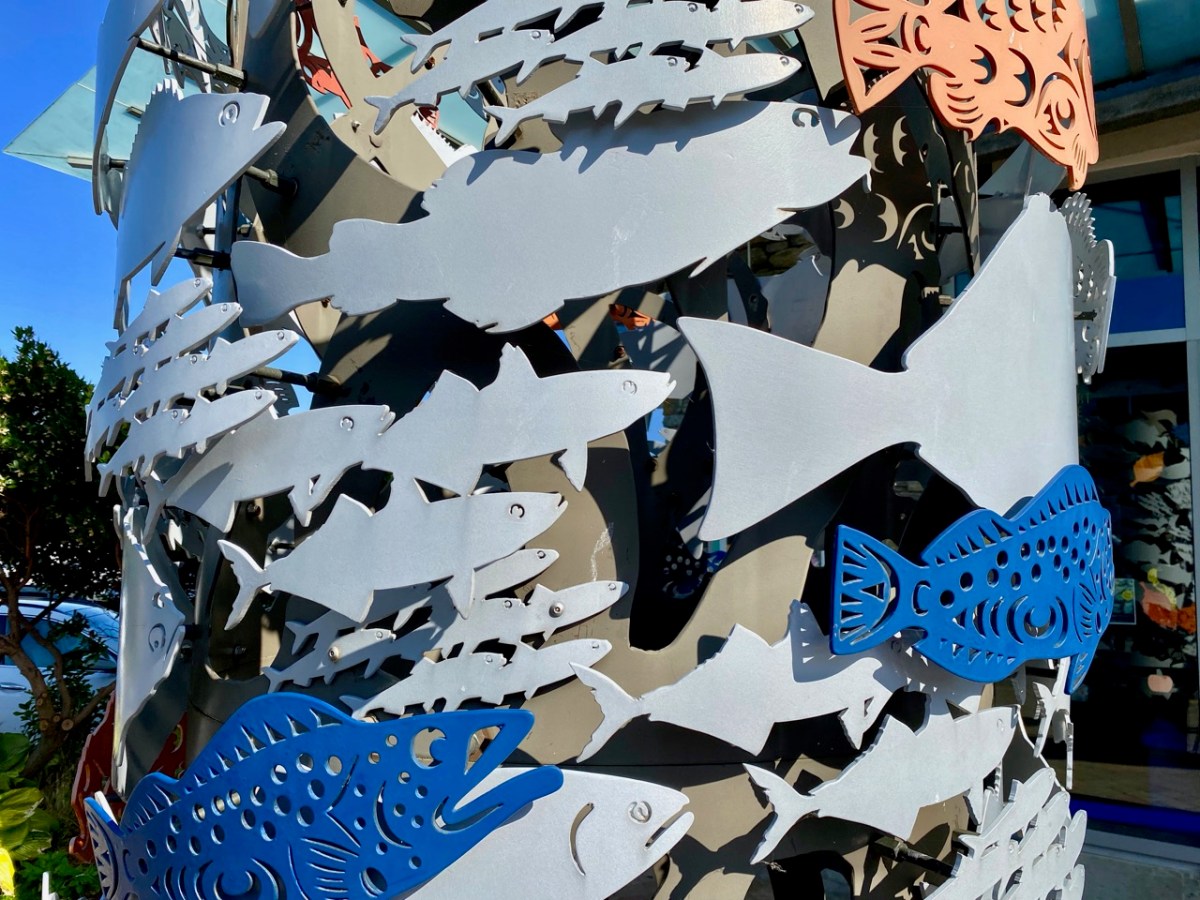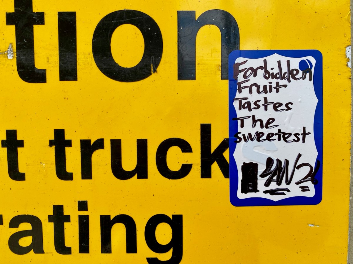 It’s time for another review of signs we see around us. Signs are often put up to warn us to be careful (there are some of those here), but they don’t always need words. This large fishy fellow above looks as if he might bite! And I’d be careful in the vicinity of this ceramic pail below . . .
