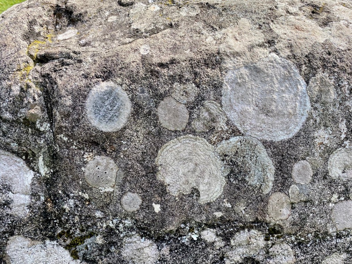 As far as we can see there are no ancient markings on the stones at Kenmare (except for a possible single cup-mark on the upper surface of the boulder burial), but I am fascinated by the lichen shapes and textures on one particular stone (above). This is ‘nature’s art’, of course.