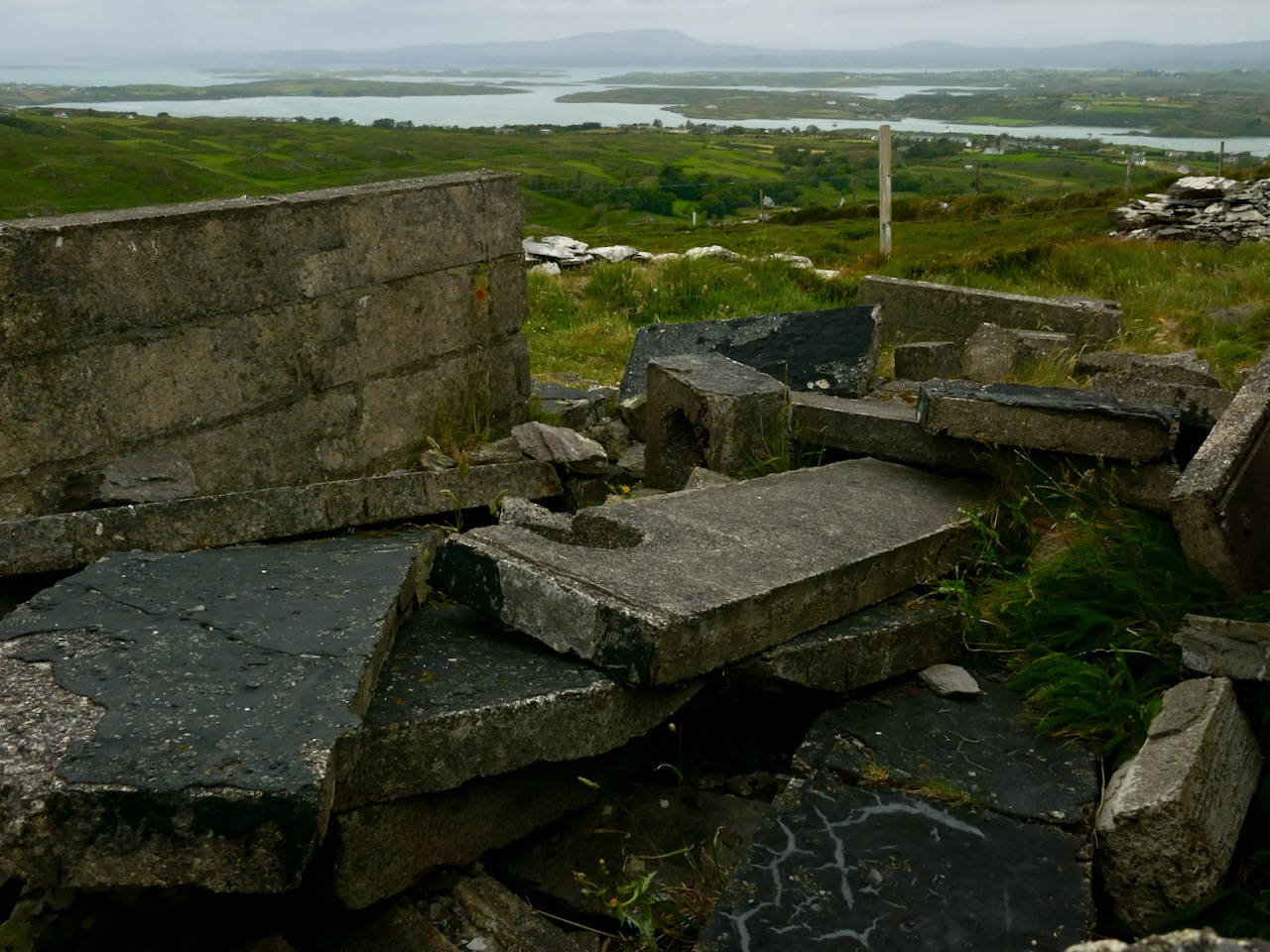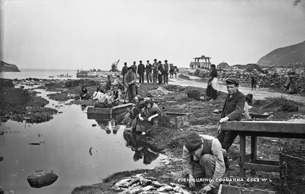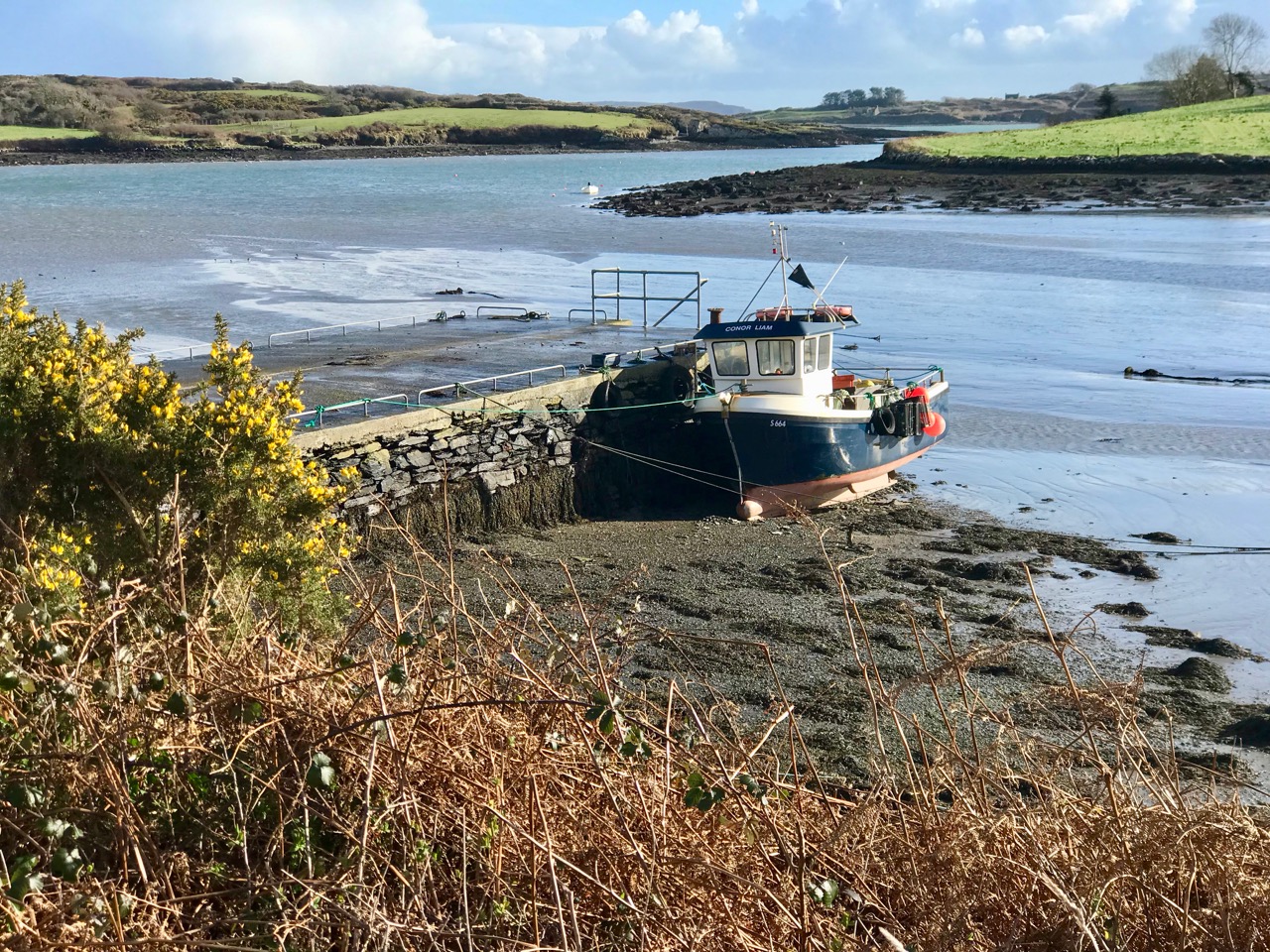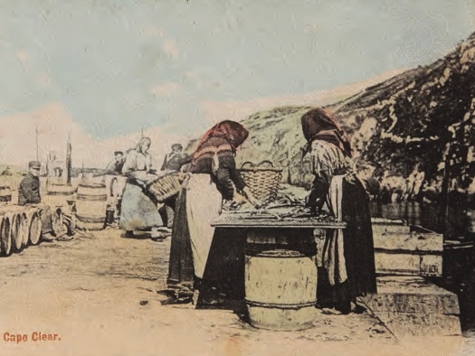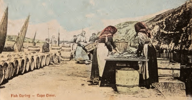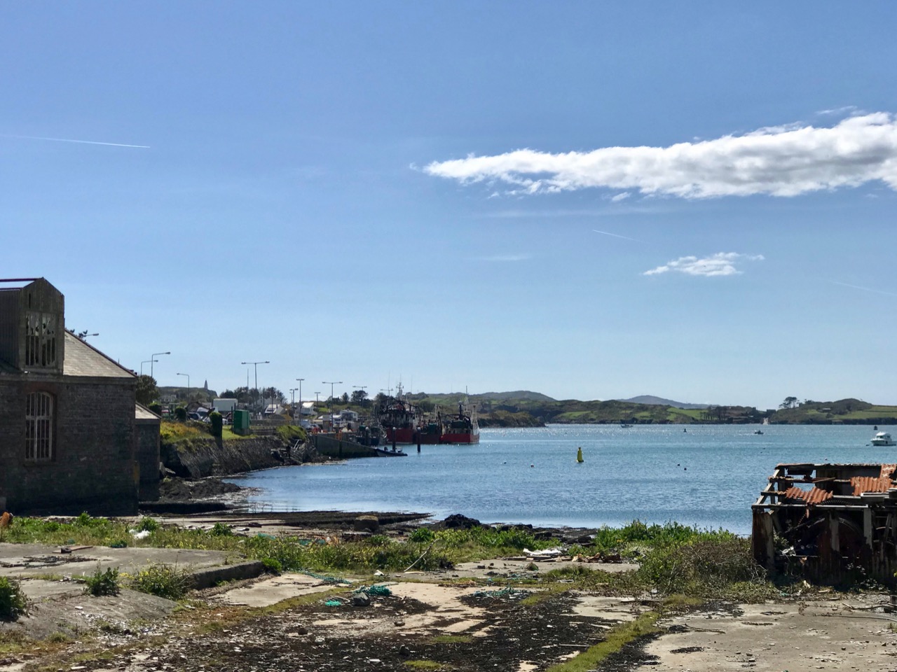. . . From the heights of Brow Head the outline of Rock Island at the mouth of the harbour resembles a partially submerged submarine, its twin customs-observation buildings the conning towers of this strange naval mammoth. An ill-assorted collection of buildings adhere like barnacles to the back of this submarine: the roofless lighthouse barracks, a defunct fish factory and an abandoned, rambling Victorian mansion suggest an unfavourable location. Wedged in the little cove in front of the mansion is the hulk of an old wooden trawler. A graveyard of vanished days and forgotten hopes . . .