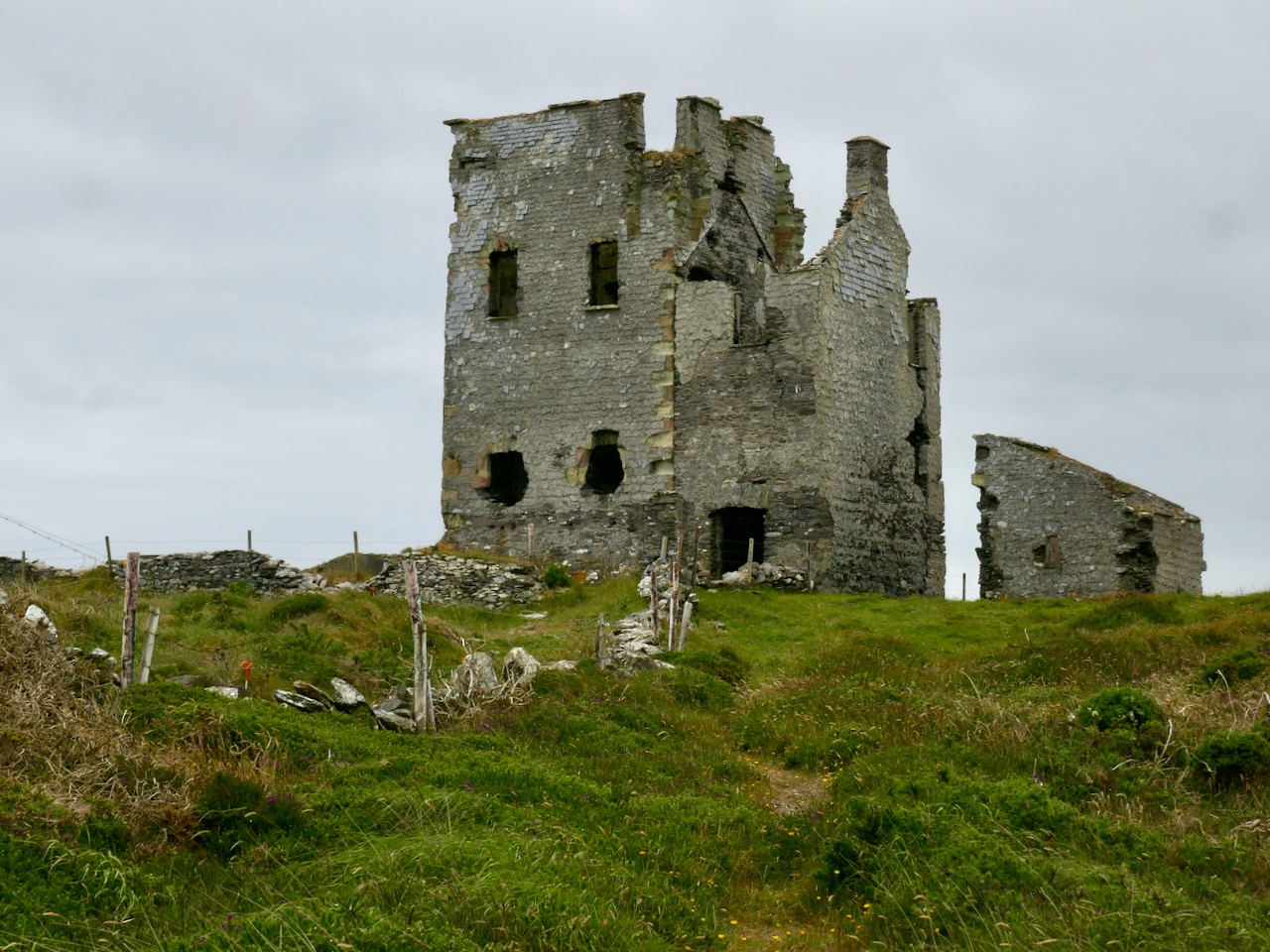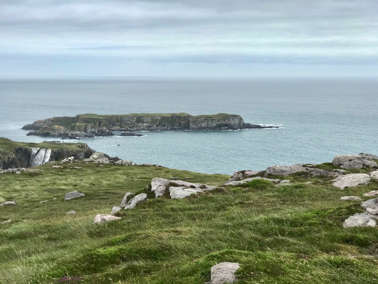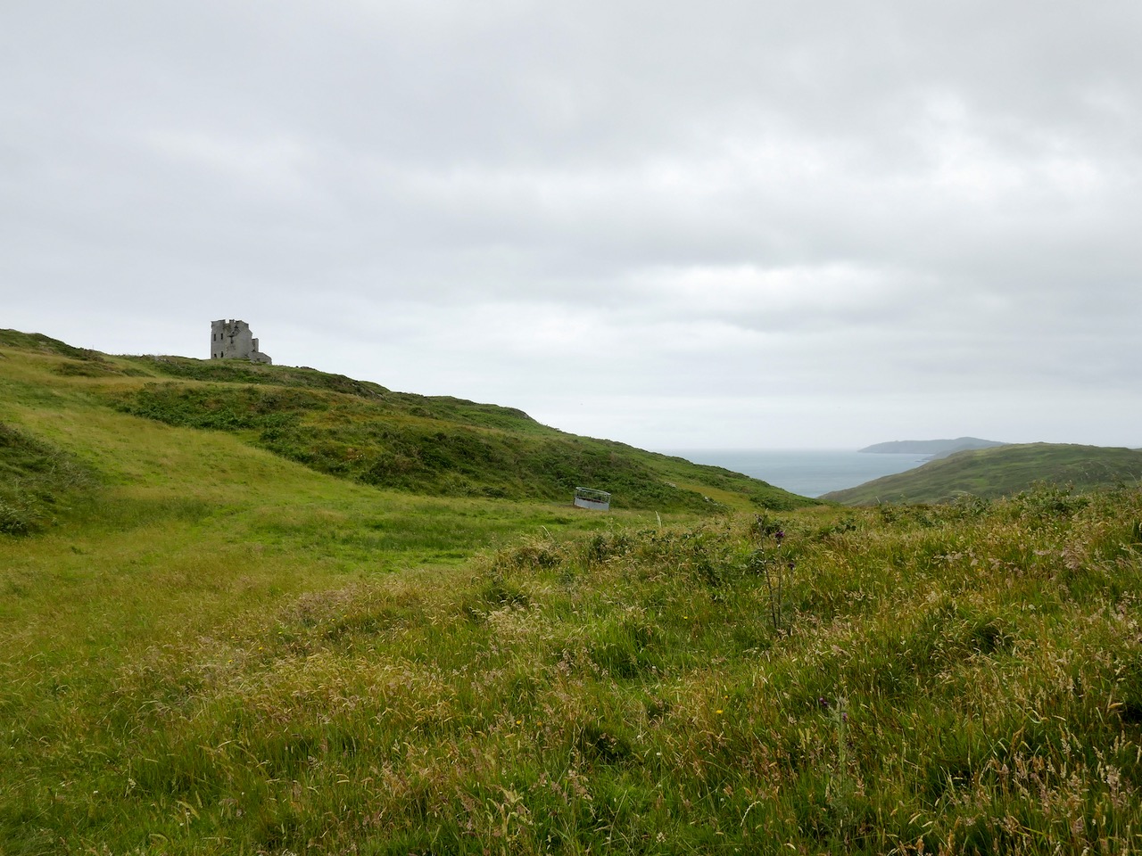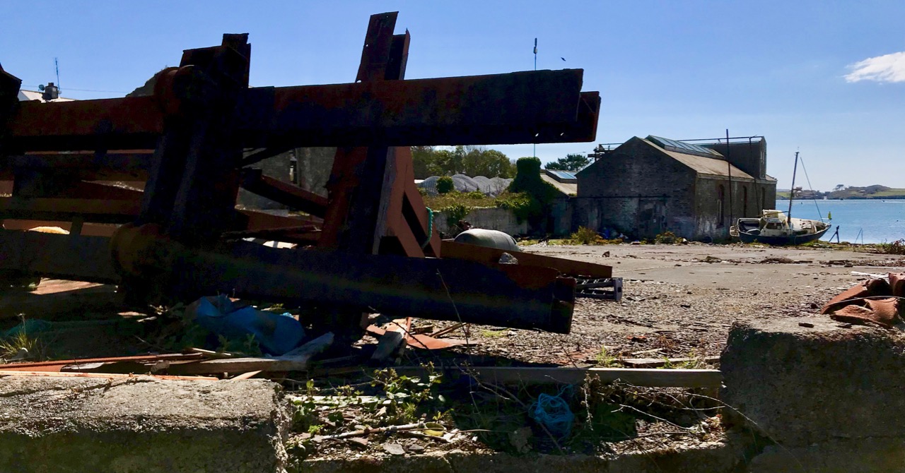 . . . From the heights of Brow Head the outline of Rock Island at the mouth of the harbour resembles a partially submerged submarine, its twin customs-observation buildings the conning towers of this strange naval mammoth. An ill-assorted collection of buildings adhere like barnacles to the back of this submarine: the roofless lighthouse barracks, a defunct fish factory and an abandoned, rambling Victorian mansion suggest an unfavourable location. Wedged in the little cove in front of the mansion is the hulk of an old wooden trawler. A graveyard of vanished days and forgotten hopes . . .