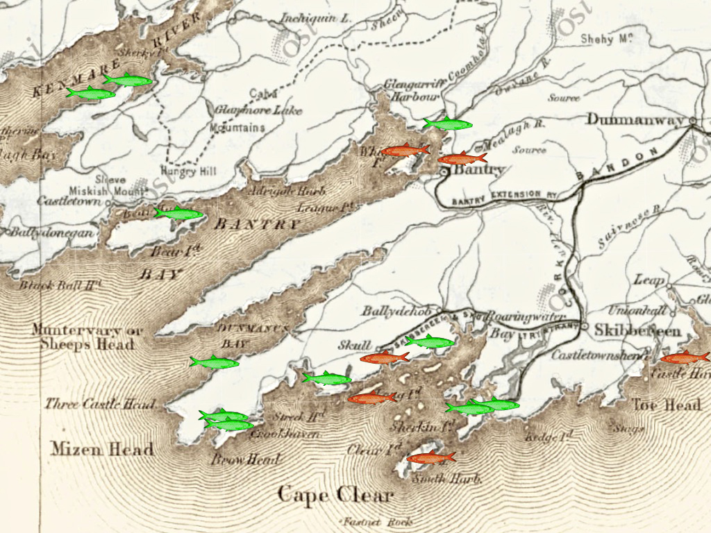 . . . Roaring Water Bay encompasses an area of about a hundred square miles of water between Baltimore in the east and Crookhaven in the west. The tortuous coastline of the bay, as of much of the rest of West Cork, is punctuated by small coves, each with an old stone pier or miniature harbour. Up to the mid-nineteenth century these were the arteries of communication and trade and a wide array of lighters, barges, rowboats and yawls plied the coast, ferrying freight around the rim of the land rather than through it. Never far from the safety of land, they darted from port to port with the assurance of safe harbours at frequent intervals to reduce the threat from treacherous seas. Today, however, only the yachtsman holds this perspective on the land; it is a medieval cartographer’s view of the world: good on outlines, vague concerning the interior . . .