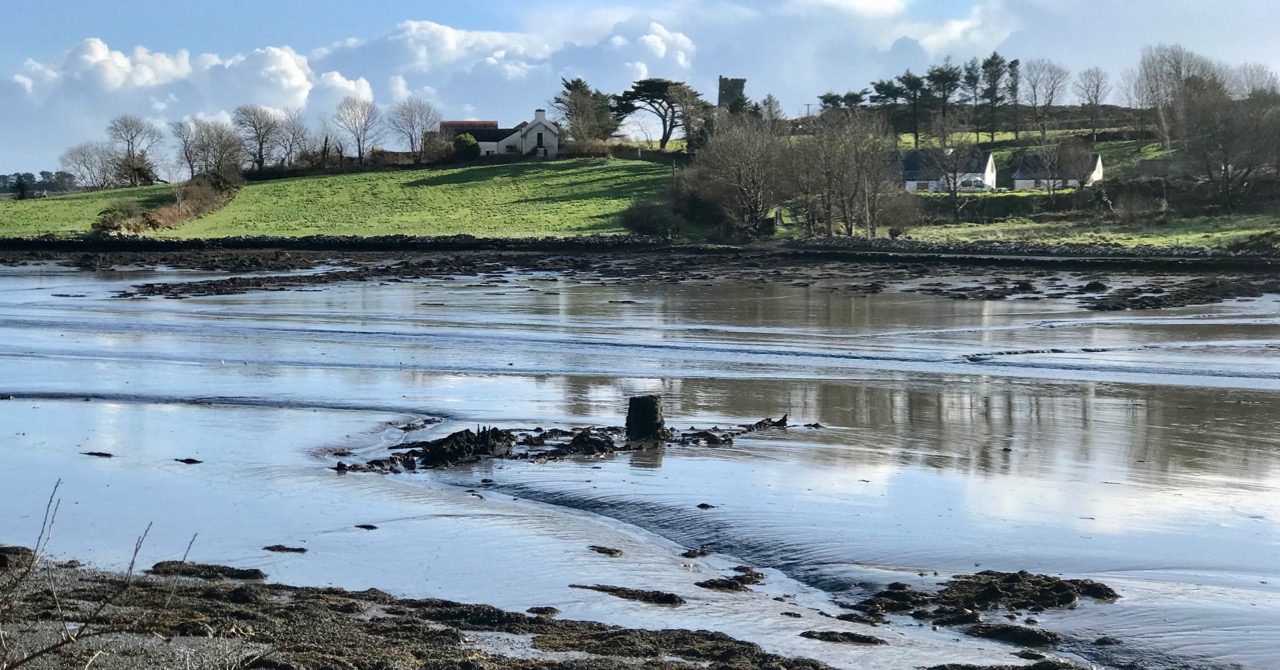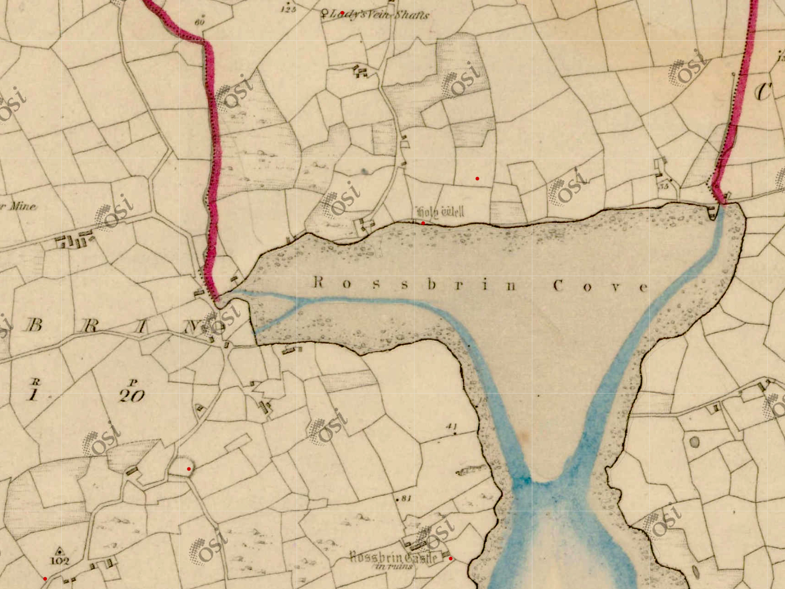 Essential to the intimate knowledge of West Cork’s landscape is the sea – and the coastline which encompasses it. This view is titled Rock Island & Crookhaven. Brian enhances the rendering with a description: