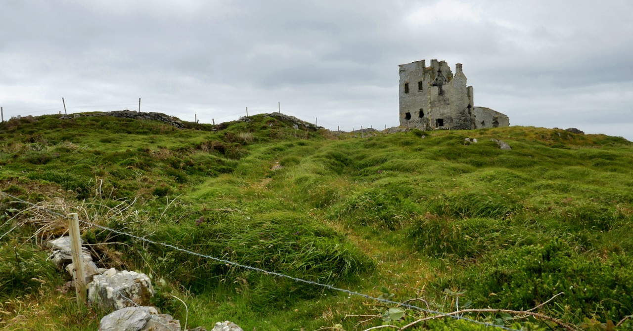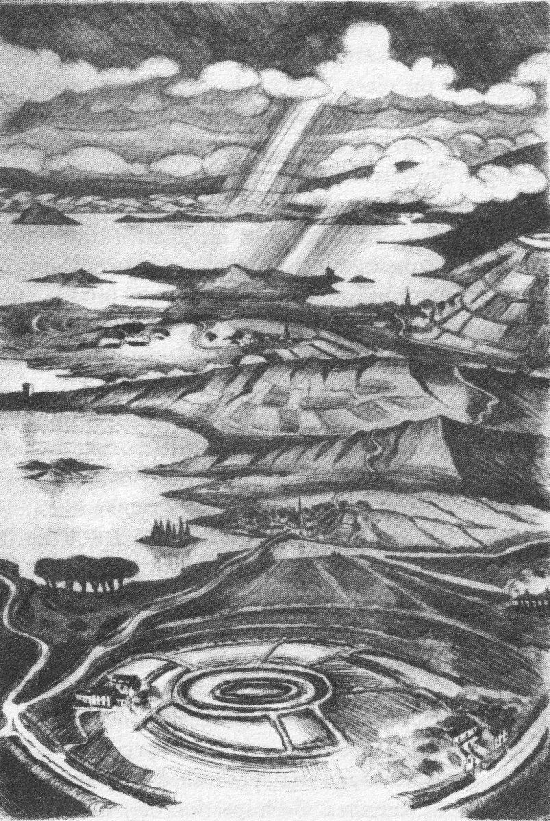 . . . Defining the high spots in the ribs of land, and distributed with apparent regularity all over this landscape, were lush green rings. Single, and occasionally double or triple concentric rings of grassy banks, these features resembled a giant’s game of quoits, forgotten and left to decorate the landscape. The gargantuan quoits are of course the ring forts or fairy rings of the Irish countryside, and outlined the forms taken by the rural farmsteads and dwellings from pre-Christian times down to the sixteenth century. Each ring represented an earthen rampart on high ground, with perhaps a dry moat or further rampart encircling some wattle huts. Simple and utilitarian, this form of dwelling satisfied the political and practical exigencies of the day – or aeon, for that matter. Rural life was lived in the midst of the land, without congregating in towns or villages . . .