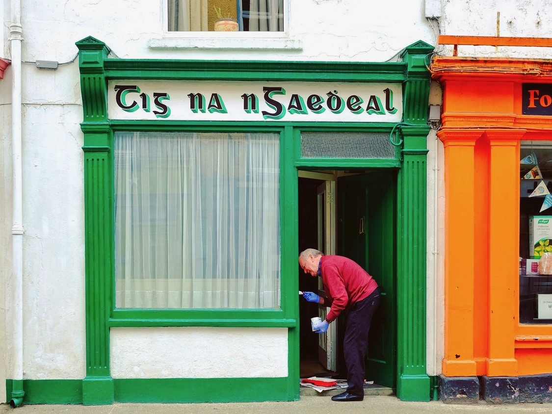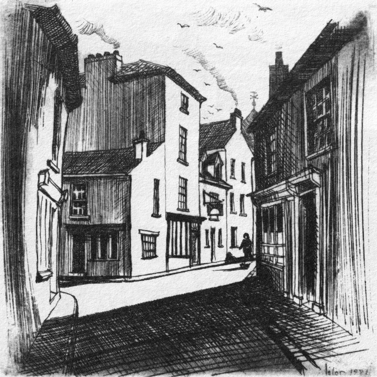 Here it is: a modestly sized paperback volume. But it punches well above its weight. It is beautifully written, and exquisitely illustrated. For everyone who is interested in West Cork, Ireland or the art of engraving it’s a must for your bookshelves. And, historically, it’s fascinating: the cover picture, above, shows Tig na nGaedheal (locally known as Brendan’s) – once described as ‘the greatest and most famous sweet shop ever in Skibbereen’. Sadly, Martha Houlihan, who ran it with her husband Brendan, passed away a little while ago and the shop is no longer trading. It’s still a significant feature in the town streetscape (below). Note the figures looking out of the door and window in Brian’s etching – a typical humorous touch.