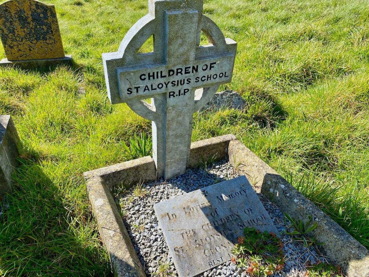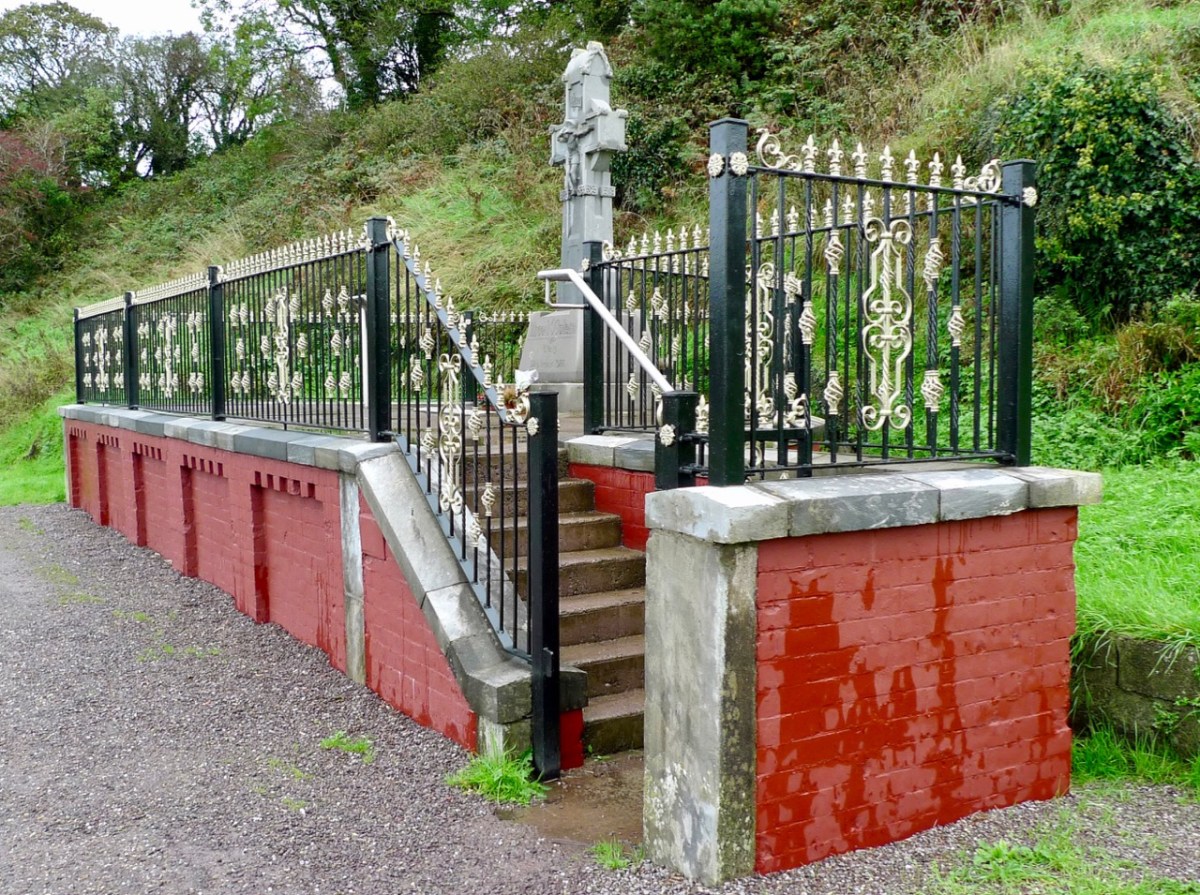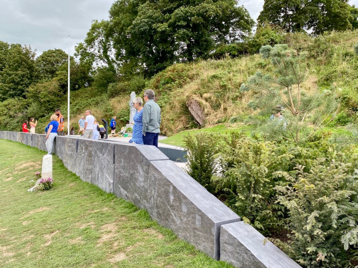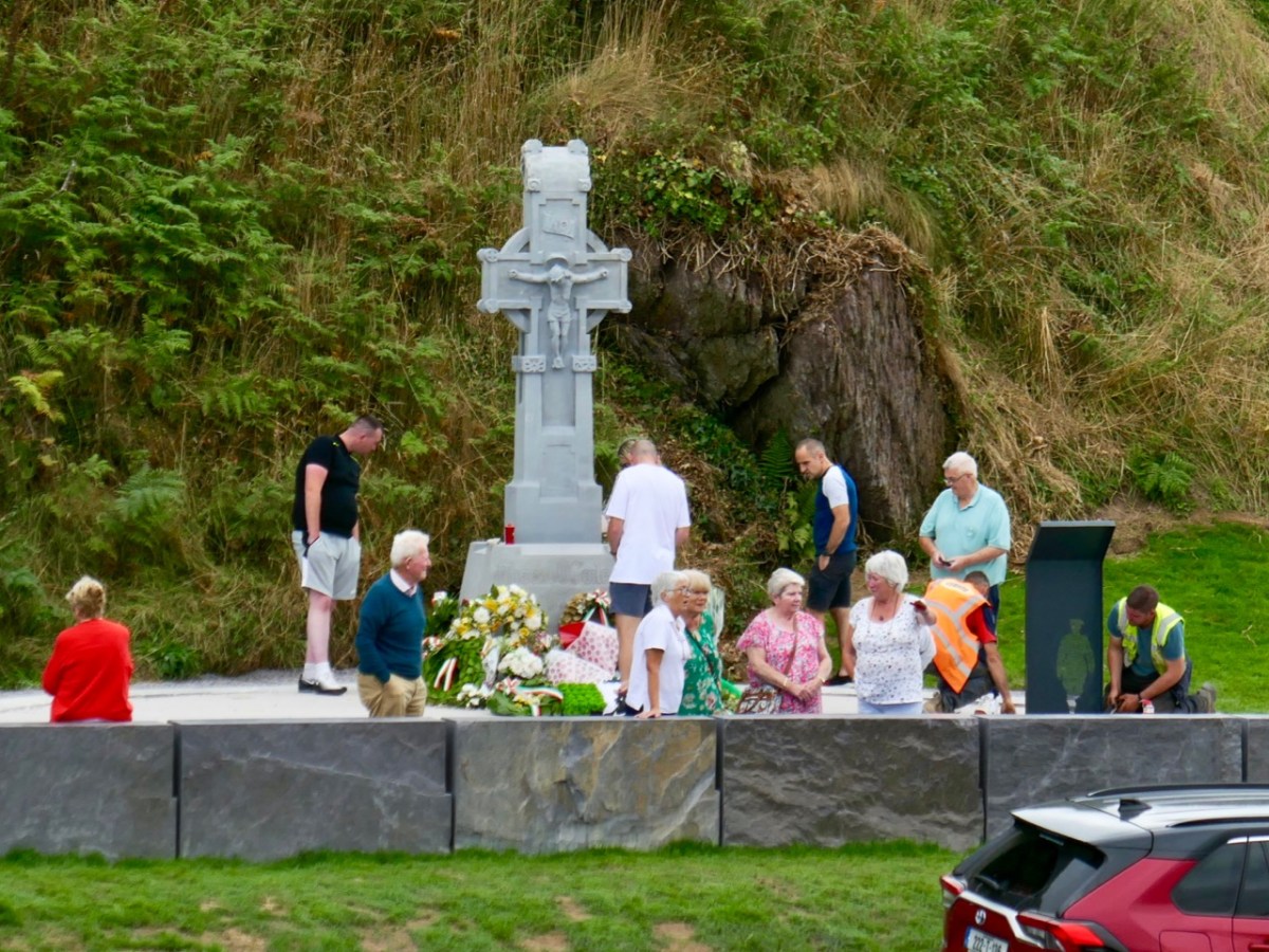 The new walling defining the edge of the memorial site is built from huge blocks of slate from Valentia Island Quarry, Co Kerry: “. . . the most westerly quarry in Europe . . .” The material is fittingly monumental. When we visited Valentia back in January 2019, we recorded the fact that this quarry has its very own Marian grotto: