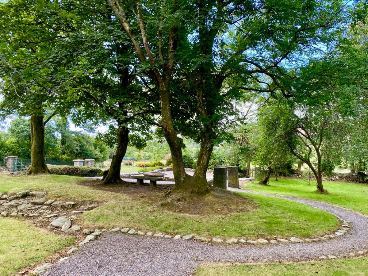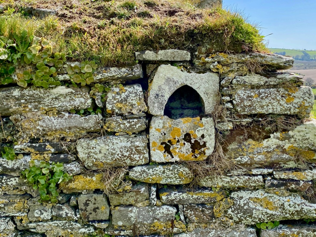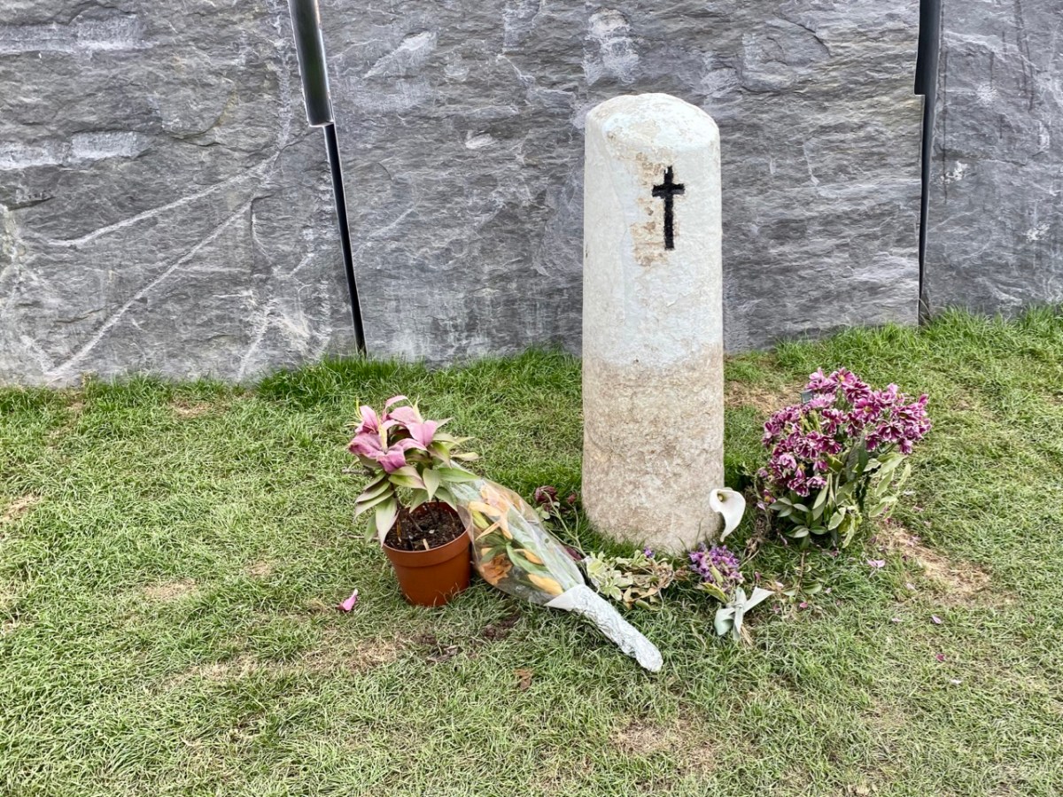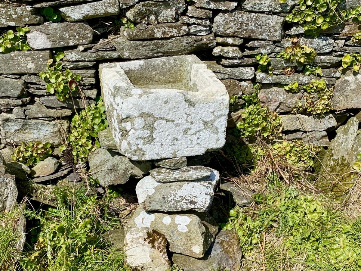 The new walling defining the edge of the memorial site is built from huge blocks of slate from Valentia Island Quarry, Co Kerry: “. . . the most westerly quarry in Europe . . .” The material is fittingly monumental. When we visited Valentia back in January 2019, we recorded the fact that this quarry has its very own Marian grotto: