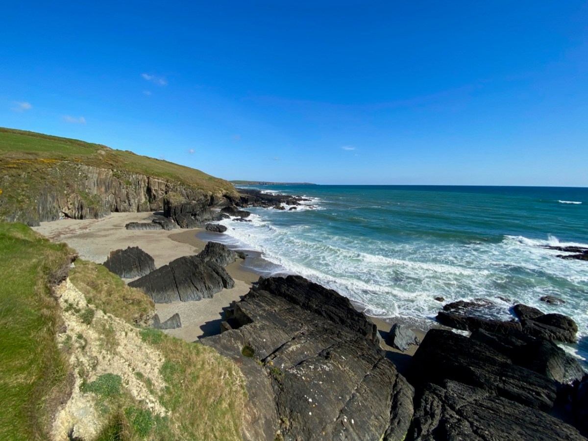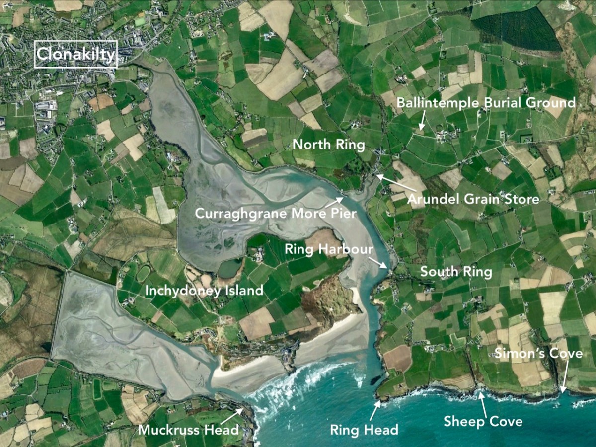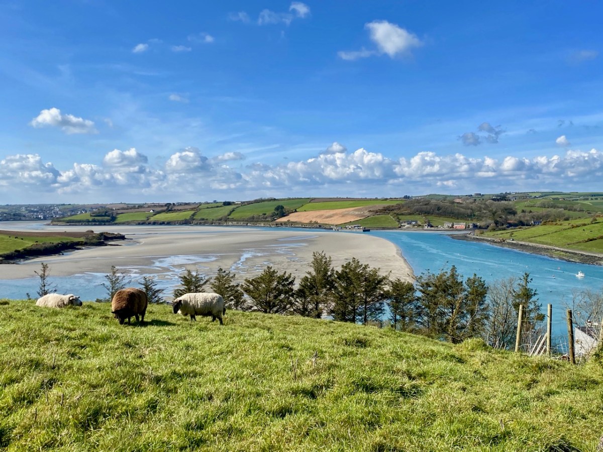 The Michael Collins Centre (above) has been run for over 23 years by members of the Crowley family who are directly related to Collins. Visitors are given a comprehensive presentation on his life and times – and his death. There are many artefacts and memorabilia, including replicas of the vehicles which were in the convoy at Béal na Bláth. It’s also well worth looking out from the Museum grounds to the spectacular view across the Argideen River valley (below). Argidín means Little Silver River, and it flows from Reenascreena to Courtmacsherry.