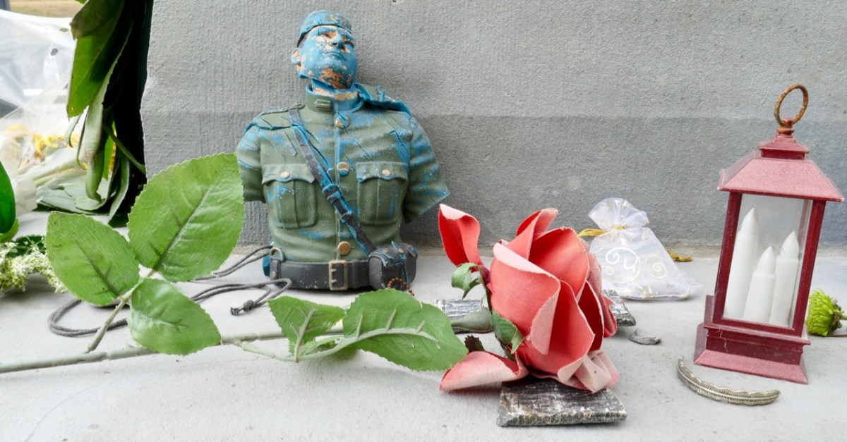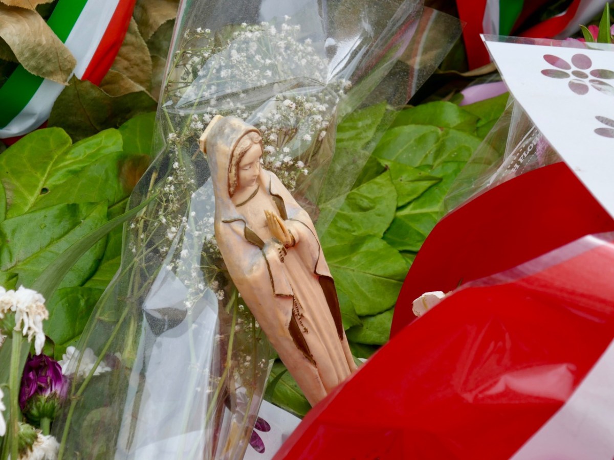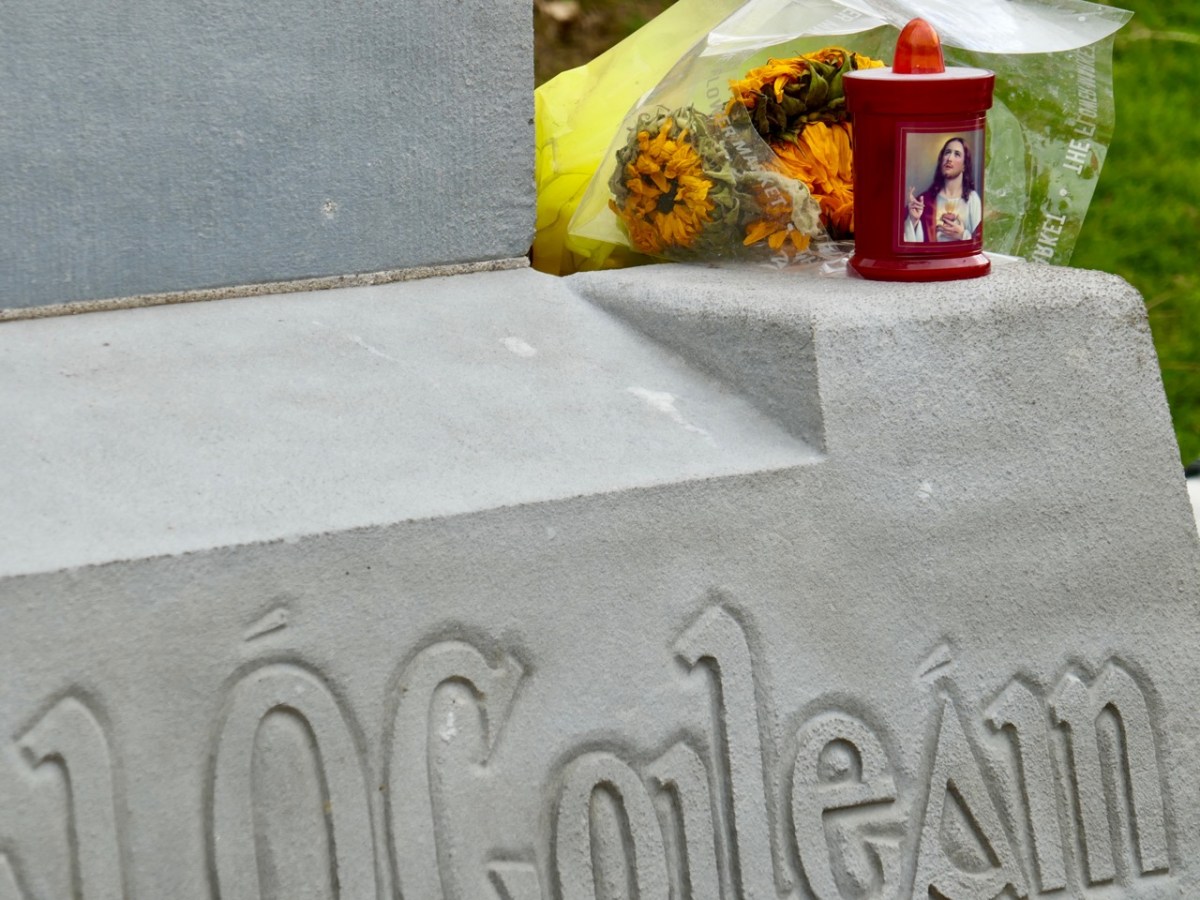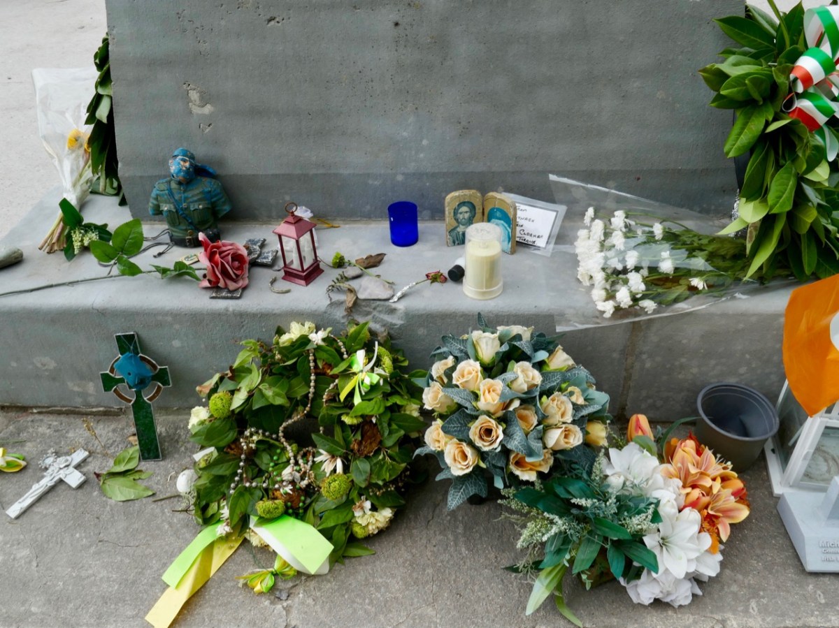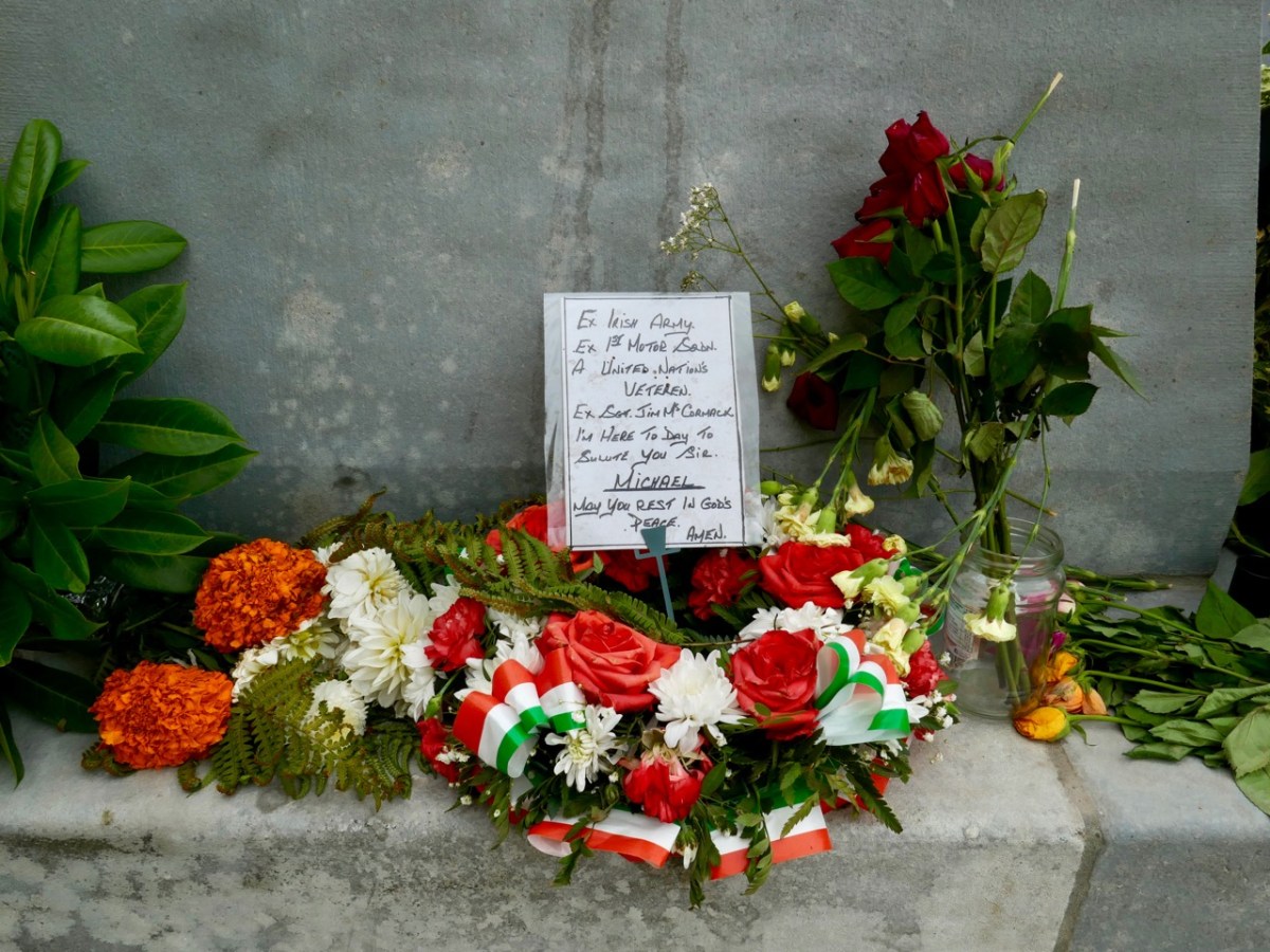 We were interested – and pleased – to see that the upgraded memorial still gives space to ‘popular’ offerings. We maintain that Michael Collins is on his way to beatification, and he is already being treated as more than a fallen warrior (although that status is, in itself, heroic). Amongst the floral tributes are religious symbols, messages, and ‘relics’.
