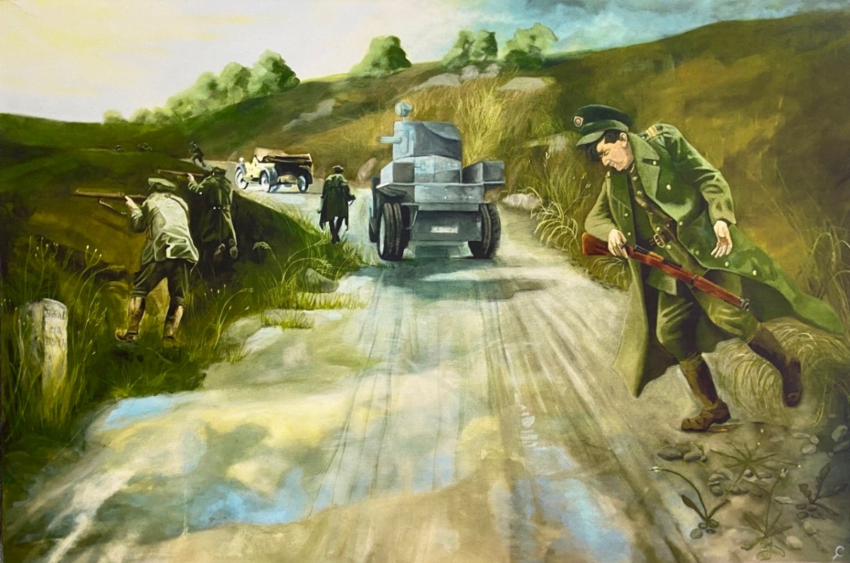‘The Moment’ at which Collins was shot by an enemy bullet, captured in a dramatic painting (above), now on display in the Michael Collins Centre at Castleview, Clonakilty. No one has ever been held to account for the shooting, which was the only fatality on that day, and some have suggested that Collins was not intentionally targeted, and may have been the victim of an accidental ricochet. It’s most likely that we will never know the true story, but there’s no doubt that popular folklore has stepped in to fill the gaps.