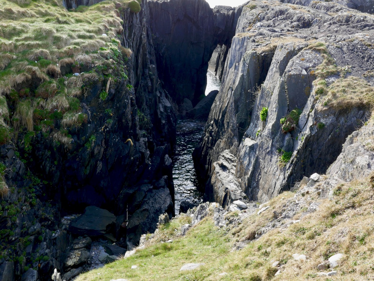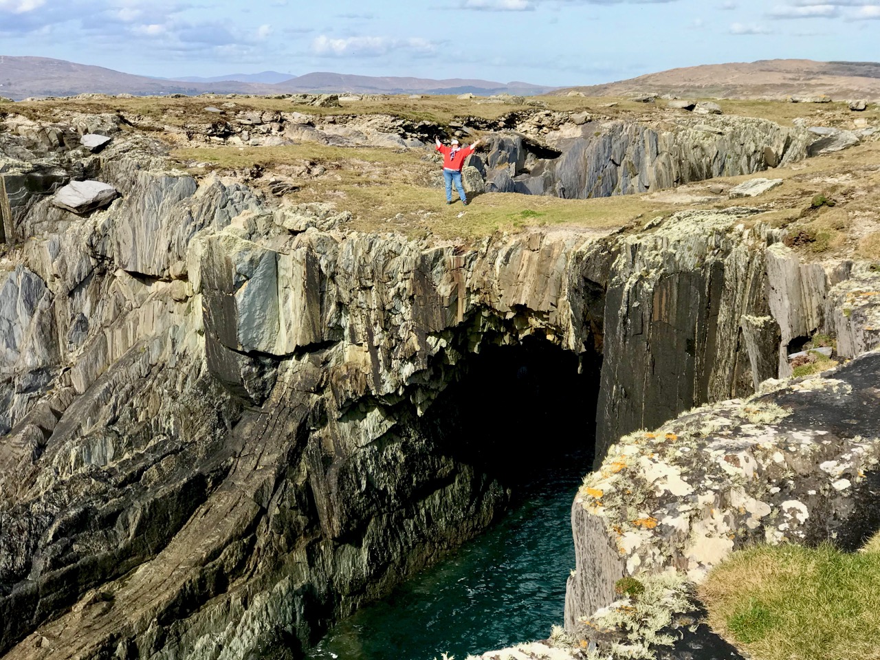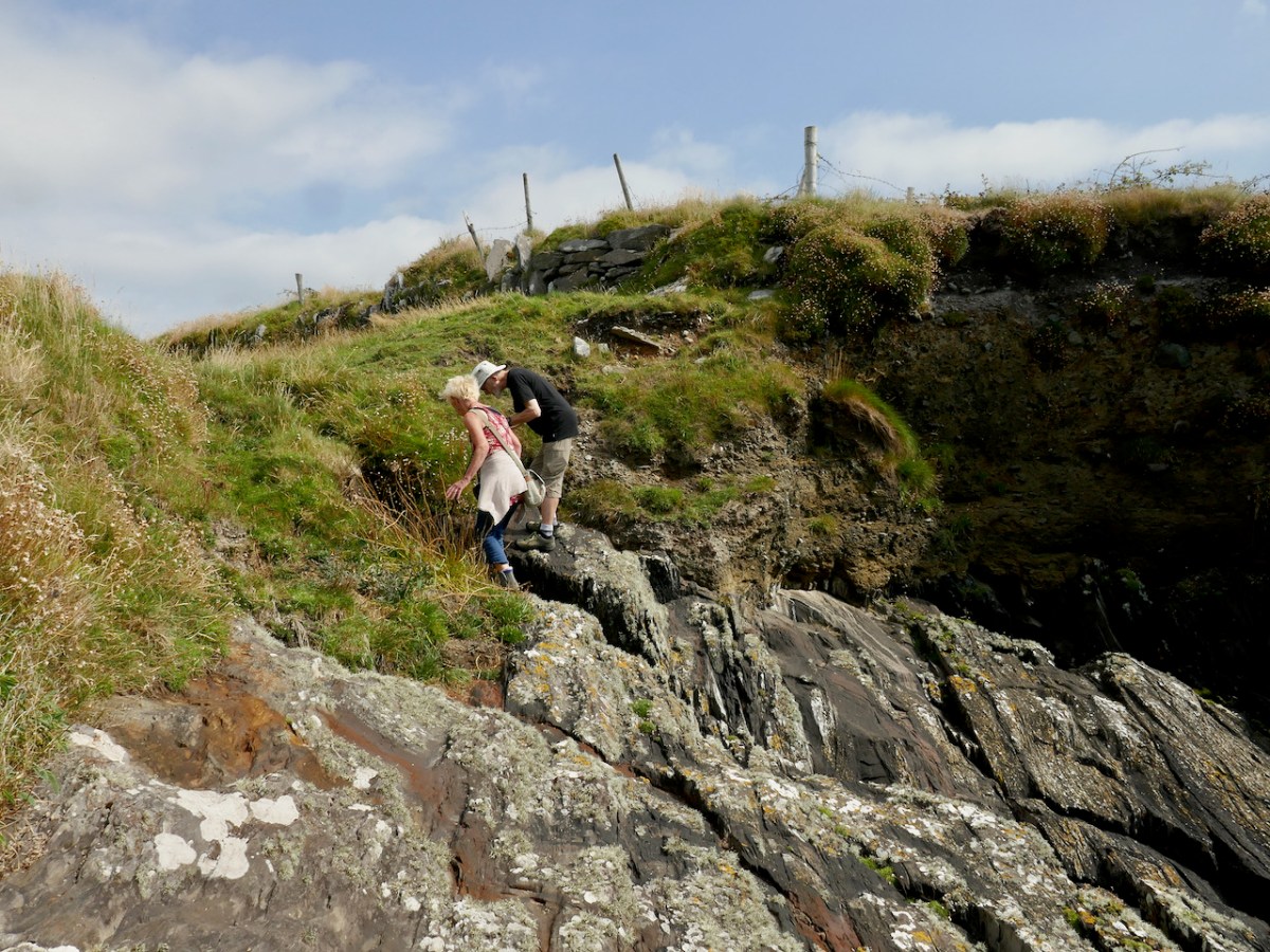 What are Amanda and Peter looking at? It’s a blow hole! Further evidence of how the sea can rage against this cliff.