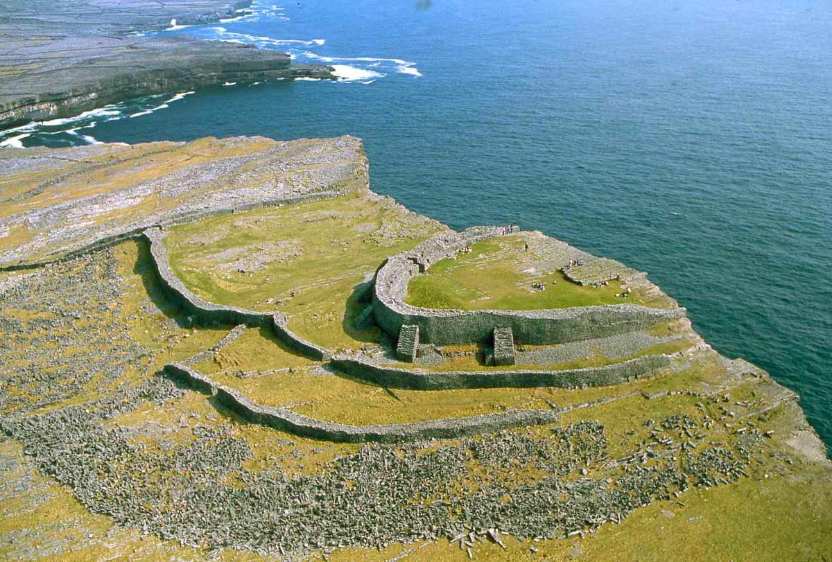 Perhaps the best known cliff-edge fort in Ireland is Dun Aonghasa on the Aran Islands (above) – it’s certainly the most spectacular. (Photo courtesy of Heritage Ireland) There are 20 examples of cliff-edge forts in Cork, of which only 6 are coastal, the rest are on ridges or steep slopes above rivers.