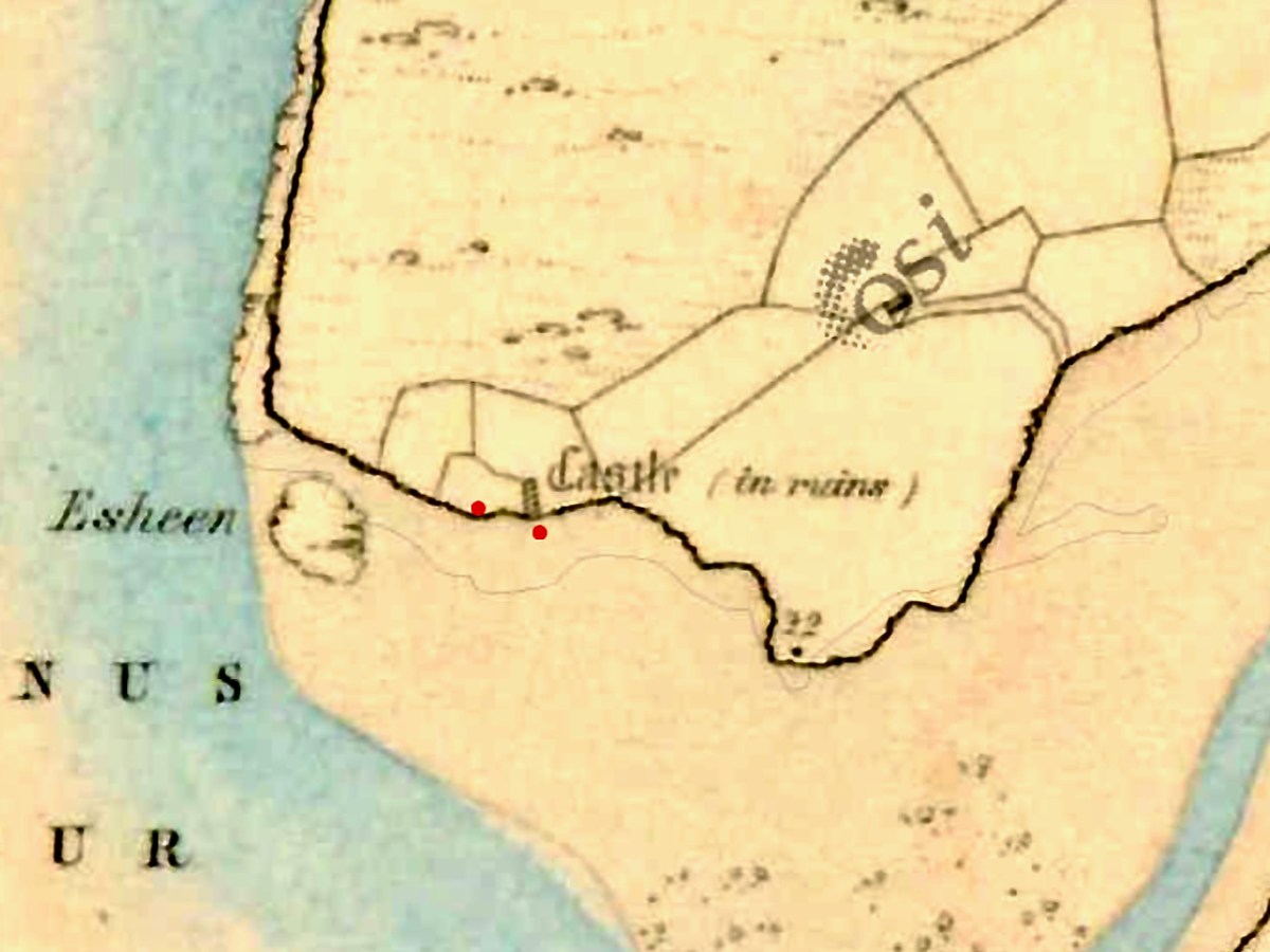 In the 25″ OS map, done in the late 1800s, the site shows ‘Castle in Ruins’