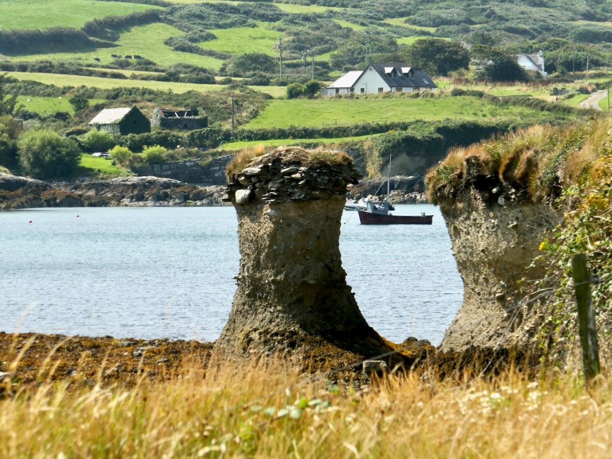 There is a strong local tradition on the Mizen, or Ivaha as I prefer to call it, that Dunmanus Castle is not the original. No – the first site for Donagh Mór O’Mahony’s Castle, the stories say, was in Knockeens, across Dunmanus Harbour from the present site. We set out to investigate.