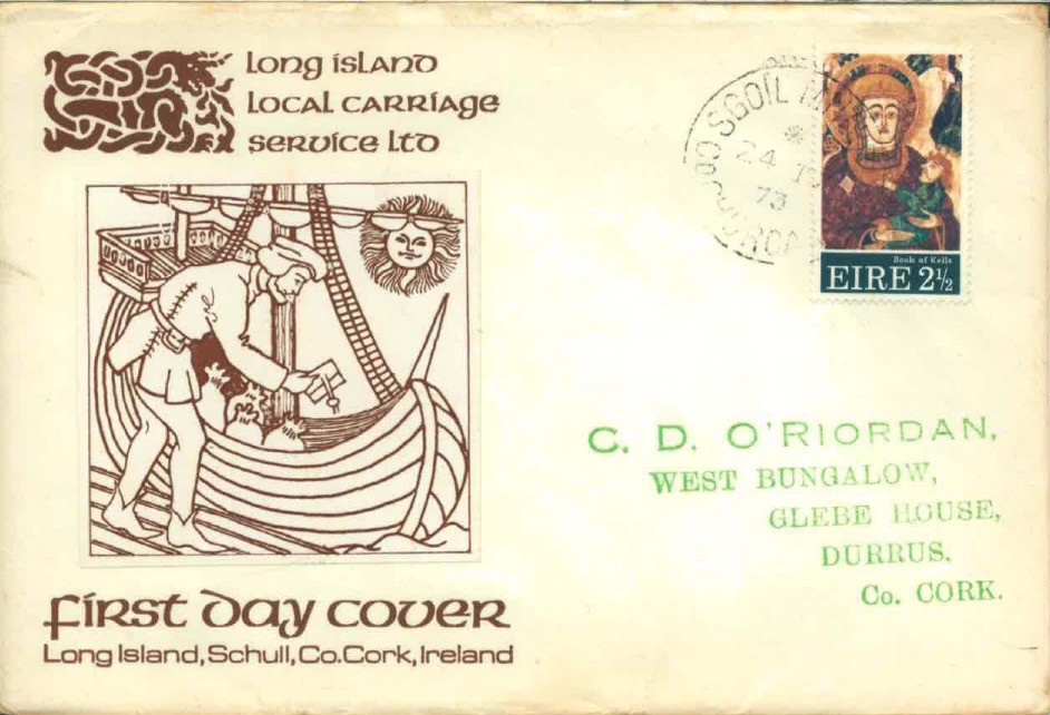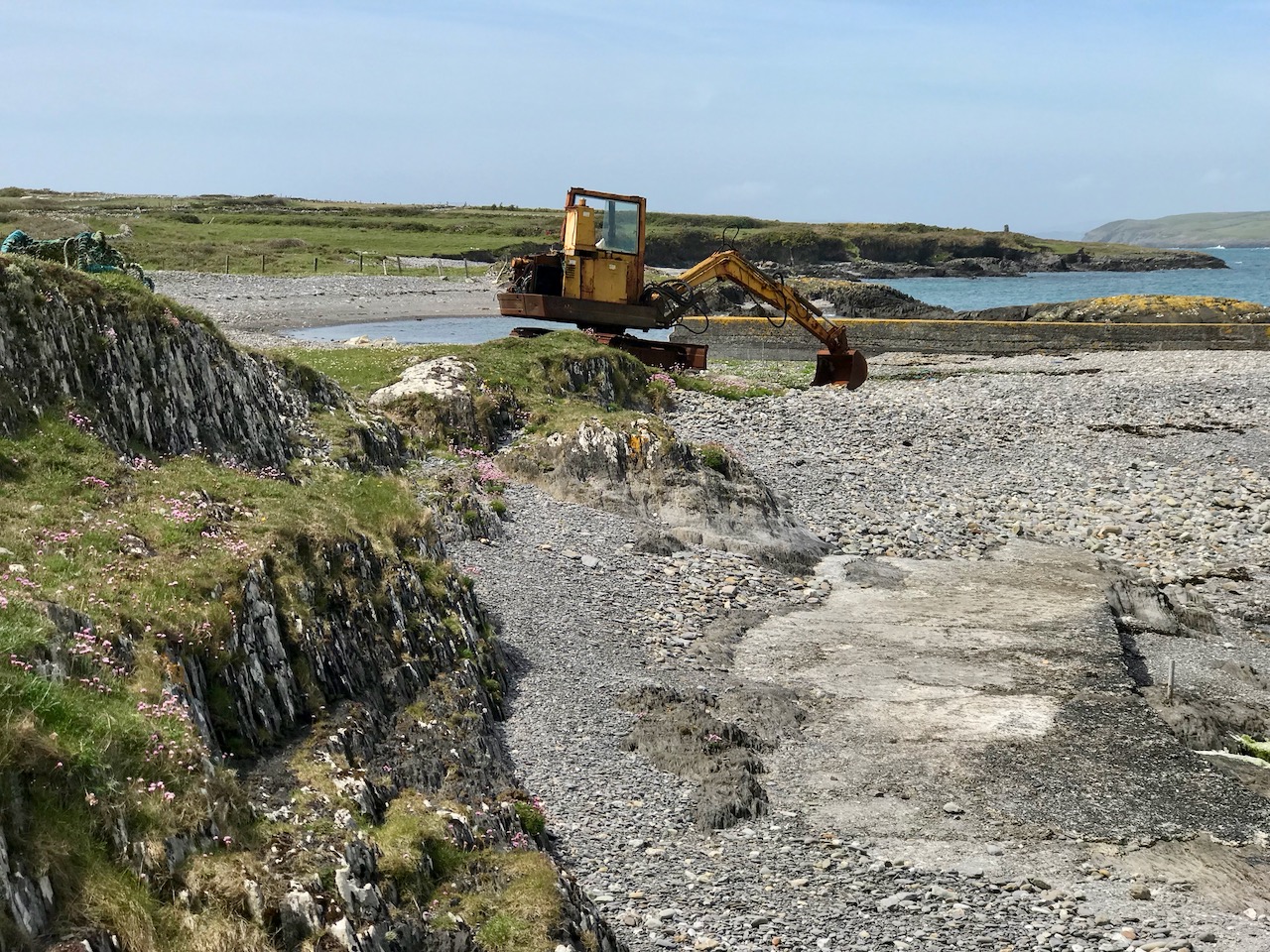 A closer aerial view of the island, above. It’s accessed by a regular ferry which leaves Colla Pier, a short distance from Schull town. The ferry arrives at Long Island Pier: there it is, on the pier (below).