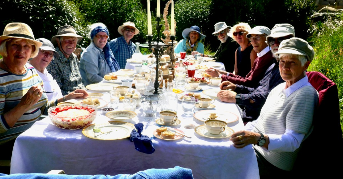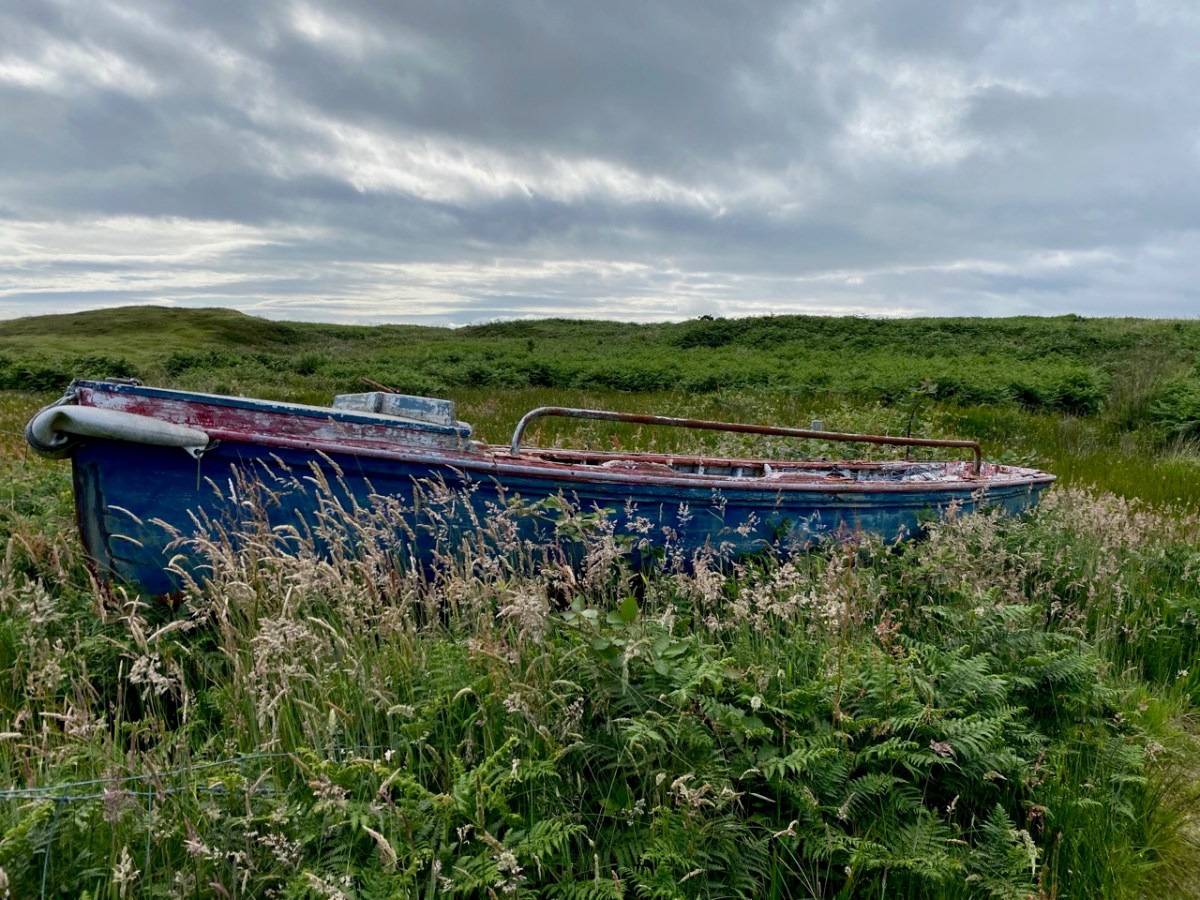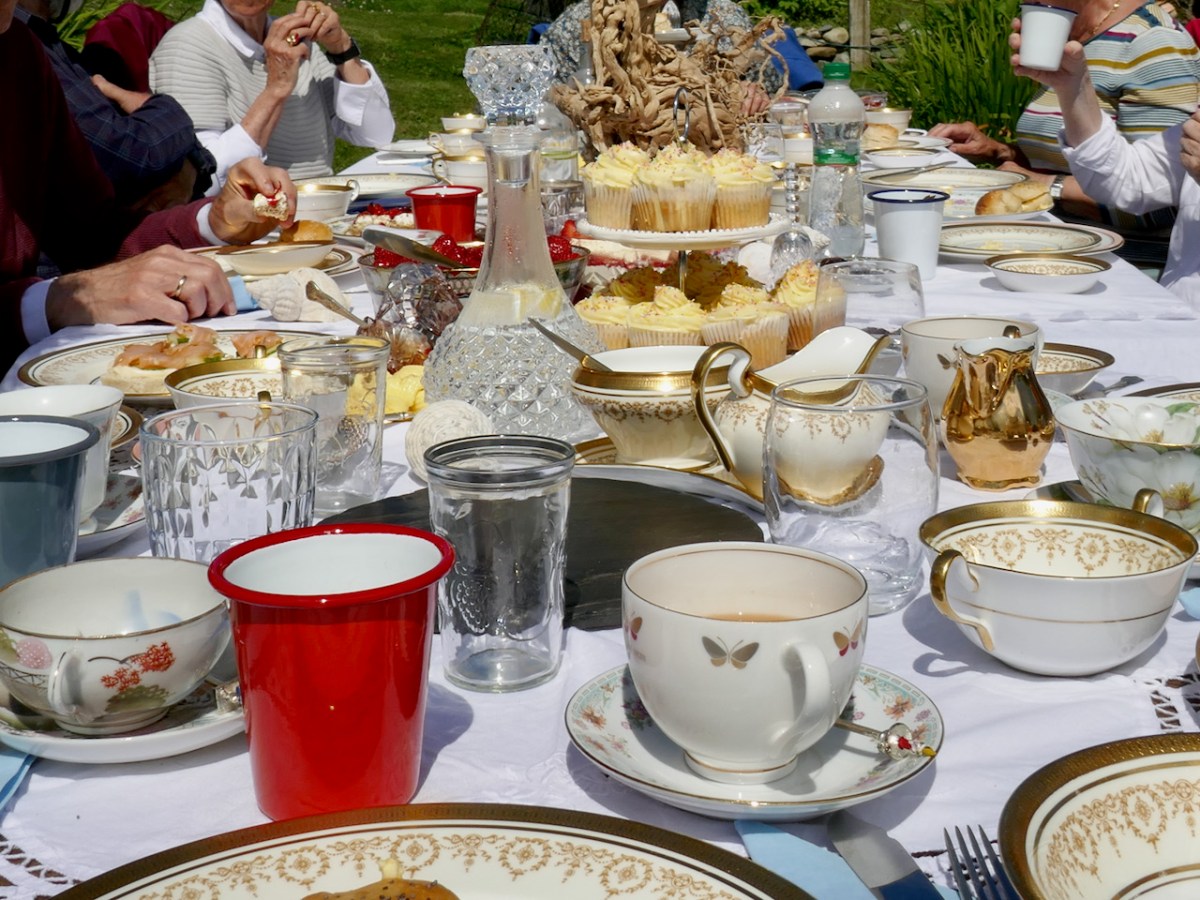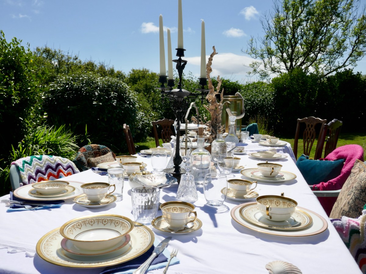 Our destination on this Easter Sunday was Castaway East – the furthest house on the ‘Easter’ end of the island. We have taken you there before, when we organised a Mad Hatter’s Tea Party in July of last year. The hosts there are Tracy and Peter, who served us brilliantly for that occasion, and also for the Wildflower Walks which Finola led last June: the Castaway crew provided a superb picnic for everyone, delivered to us at the island’s western end. This time we decided that we would test Tracy and Peter’s skills by ordering up an Easter Sunday lunch to celebrate a ‘special’ birthday for our good friend, Peter Clarke.