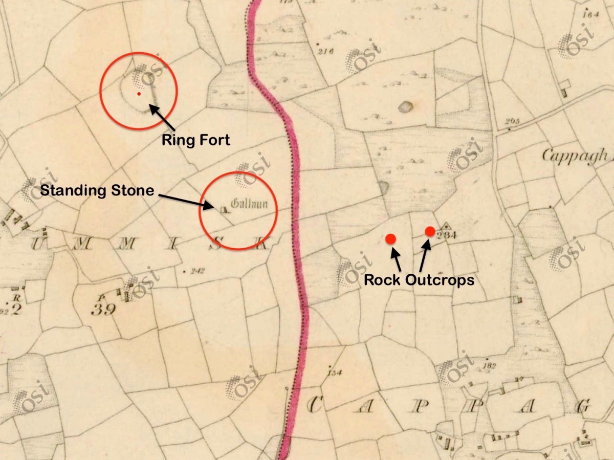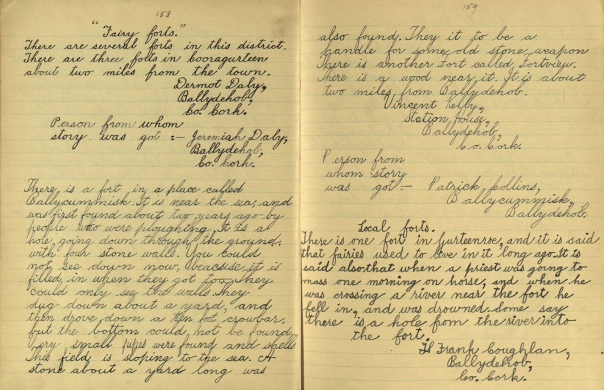 …remembered going down to a cellar which was filled with swords used to arm the tenants during the time of the Whiteboys and also with empty stone wine jars which had carried wine smuggled in from France. From this cellar there was believed to be a passage underground to the O’Driscoll Castle of Rincolisky, whose truncated remains are to be found in a neighbouring field…An earlier Townsend sent his…page down the passage to see if it was clear. The boy was never seen again.