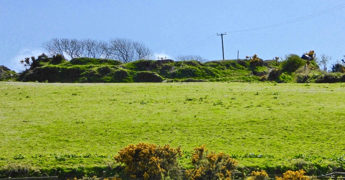 Once dubbed the “richest mine in the world” by a correspondent with the London Times, . . . worked a small but extremely rich copper deposit close to the surface from 1839-1877. The mine briefly reopened in 1888-1890 and again in 1906-1907 but only produced a trivial amount of ore. . . On the top of the hill 5 fenced off shafts can be seen and the largely obliterated ruins of the engine house built in August 1860 (bulldozed by the local council in the 1980’s as it was deemed both dangerous and an eyesore!).