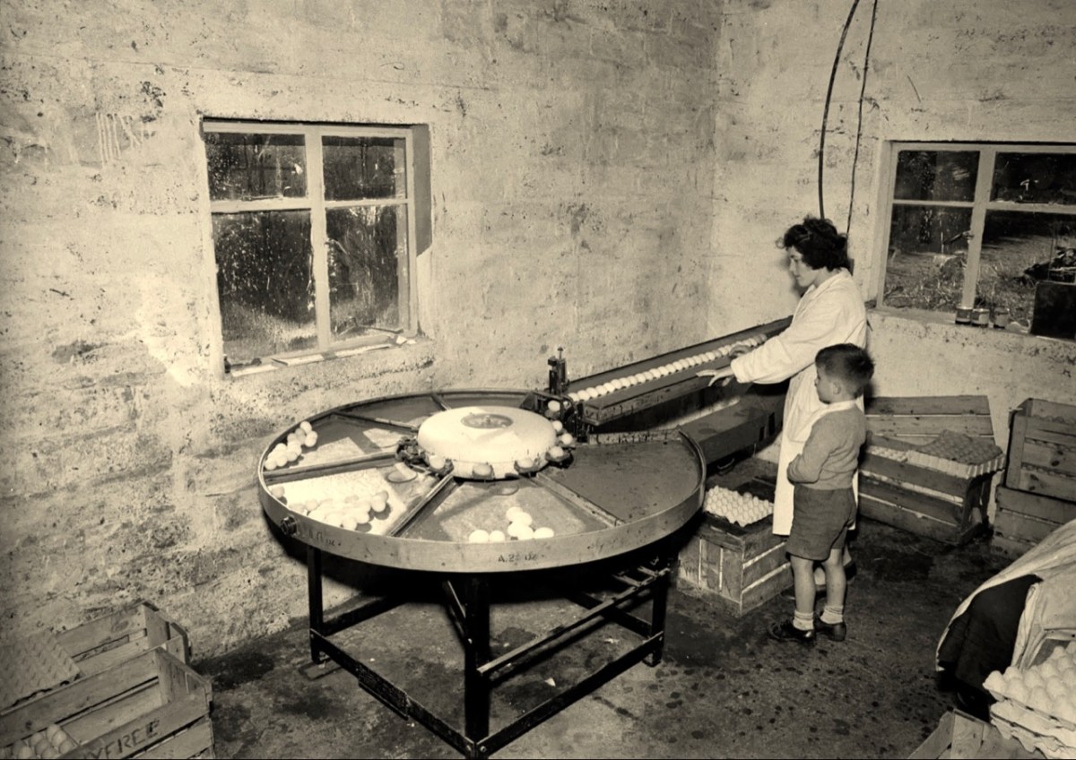 It’s intriguing that the reports in the ESB Archives from the time of installation so often represent negative views about the ‘success’ or otherwise of the rural electrification project (Mr O’Driscoll is doubtful if post development will meet with any marked success). It’s as if this ‘new fangled’ technology is never going to take the place of the way traditional life is lived in remoter places. With this viewpoint, the drudgery of manual tasks such as bringing in water from an outside source, cooking, washing clothes is likely to continue, with the housewife / farmer’s wife and their children having maximum input. It’s just as well that a more enlightened attitude prevailed in some places – here’s an early taker of the benefits of an electric egg sorting machine (ESB Archives):