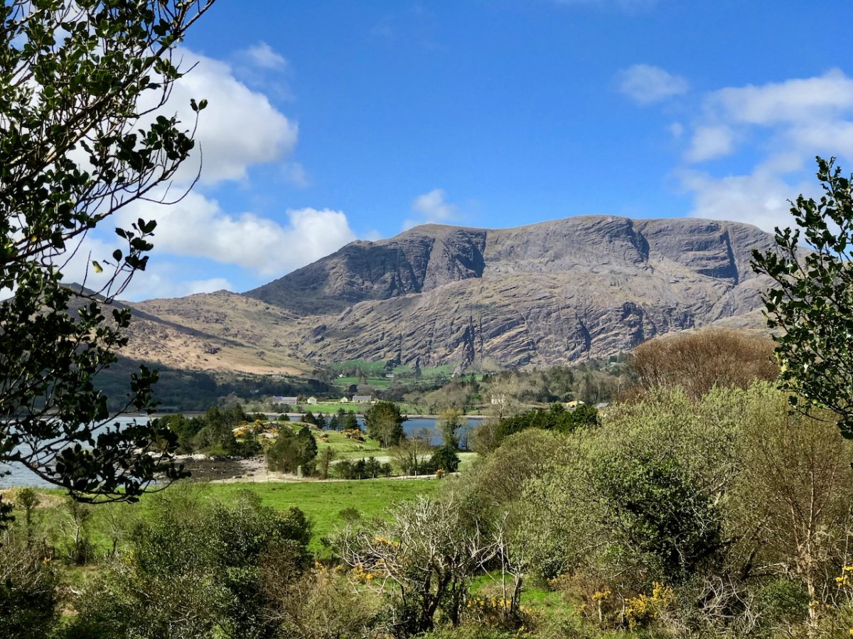 . . . Here was a scene that is hard to equal anywhere else in Ireland. Ahead of us lay the country of O’Sullivan Beara. Away in the distance lay Beara island like a sleeping monster resting on the sea, protected on the northern side by the massive bulk of Hungry Hill, and farther west by a ring of mountains whose western slopes dip down into the Atlantic Ocean. Behind us we looked across Bantry Bay at Bantry away in the distance sheltered by the bulk of Whiddy island. Nearer to us was Glengariff with its myriad of islets and heavily wooded hinterland, cosy and comfortable looking, secure in the shelter of its encircling mountains. On a cold November day in the weak wintry sunshine people do not stay long admiring scenery from such a dank vantage point as Coolieragh, and so we continued our journey westwards along by Adrigole, close to the Healy Pass, skirting the foot of Hungry Hill with its silver streak waterfalls and finally we arrived at the capital of the Beara Peninsula, Castletownbere . . .