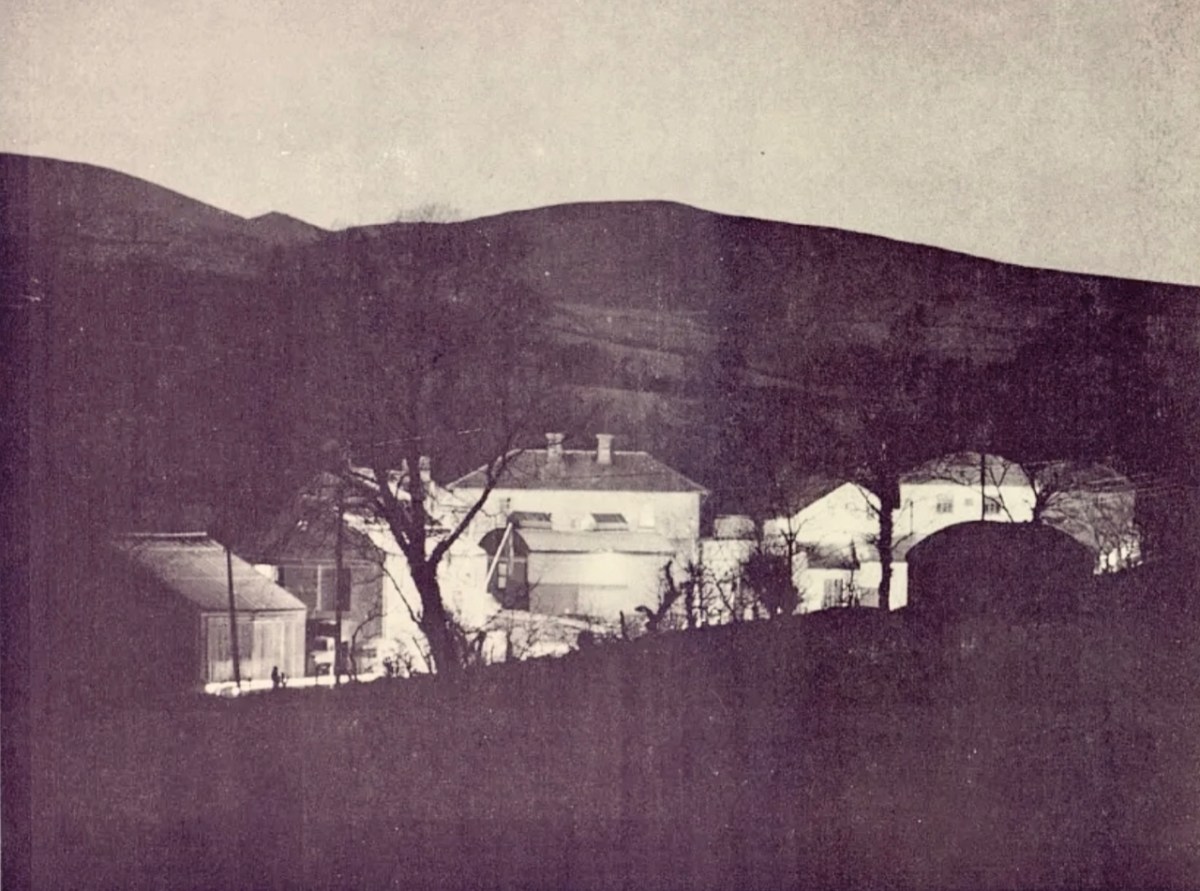 Above: “As the last rays of sun leave the hills, the lights go on at Ballinamult Creamery, the Board’s 100,000th Rural Consumer”