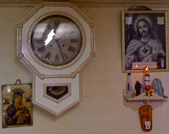 . . . Once a community was connected, or about to be connected, the ESB held public demonstrations of household appliances. These were then sold bringing electric irons, kettles, stoves to homes. The demonstration evening in Glenamaddy was held in January 1951. The handwritten report records that it took place “in the very fine Esker Ballroom”; these events were social occasions that brought communities together. The Glenamaddy evening “was attended by about 90, including 50 women. As is usual, the women appeared to be more keen than the men and more inclined to ask questions (and to argue). After the demonstration, a melodeon player turned up and an impromptu dance got under way” . . . Small towns and rural townlands became brighter and winters less harsh and Christmas more special as the fairy lights began to shine. It also gave rise to a rural Irish icon as every house had the Sacred Heart picture with the (electric) red lamp: many didn’t get a kettle and washing machine until later on . . .