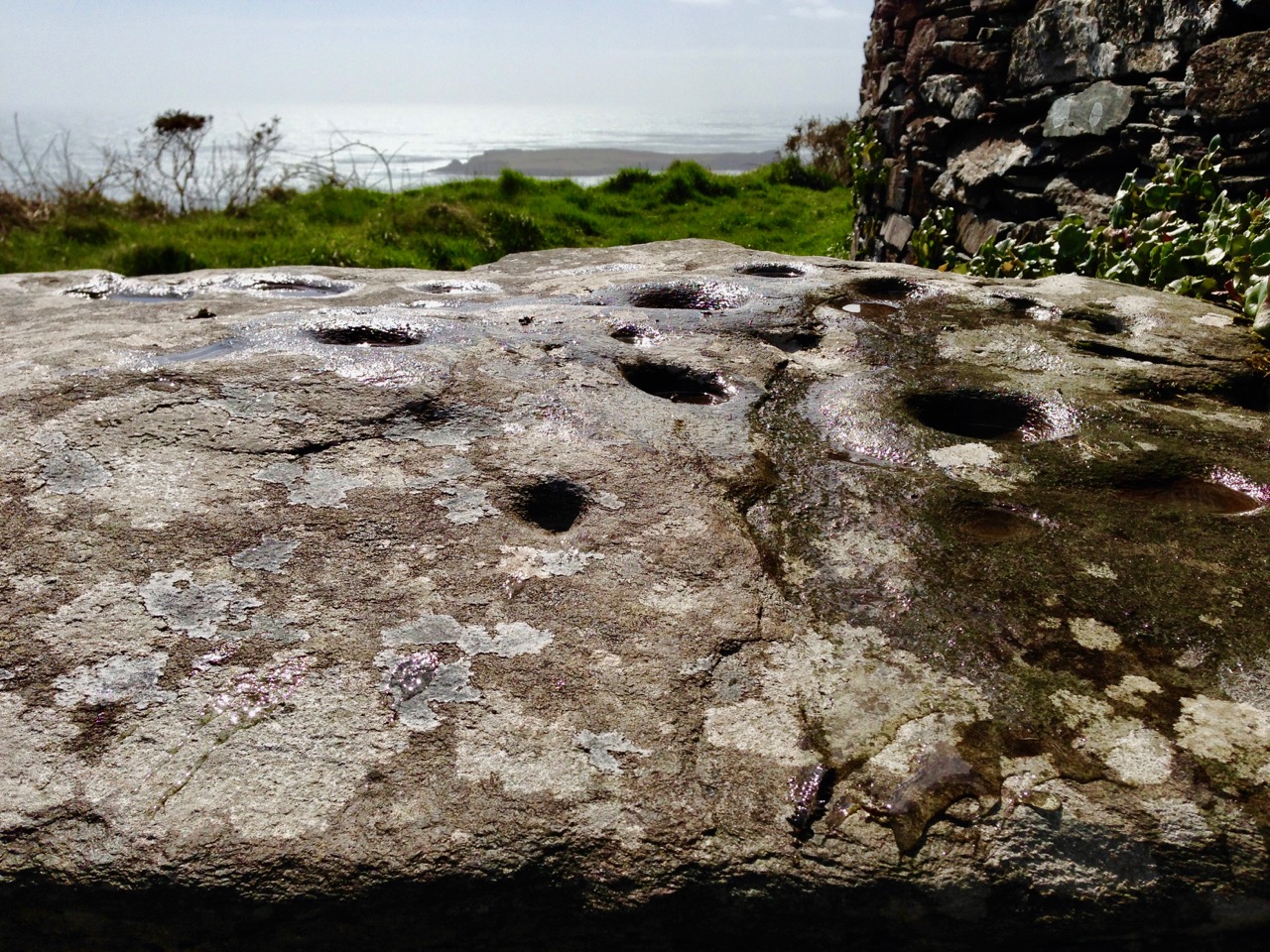 A detour brought us to a piece of archaeology – a cupmarked stone. Robert and I visited this several years ago and he wrote about it here, so you can take a look at the stone with its 14 cupmarks. I am not giving the location of this as it is on private land
