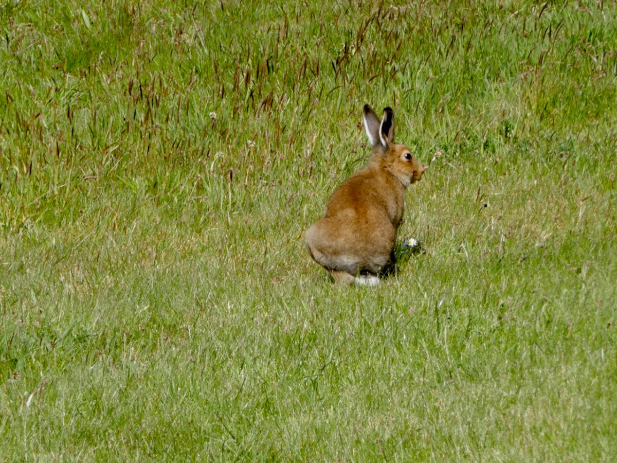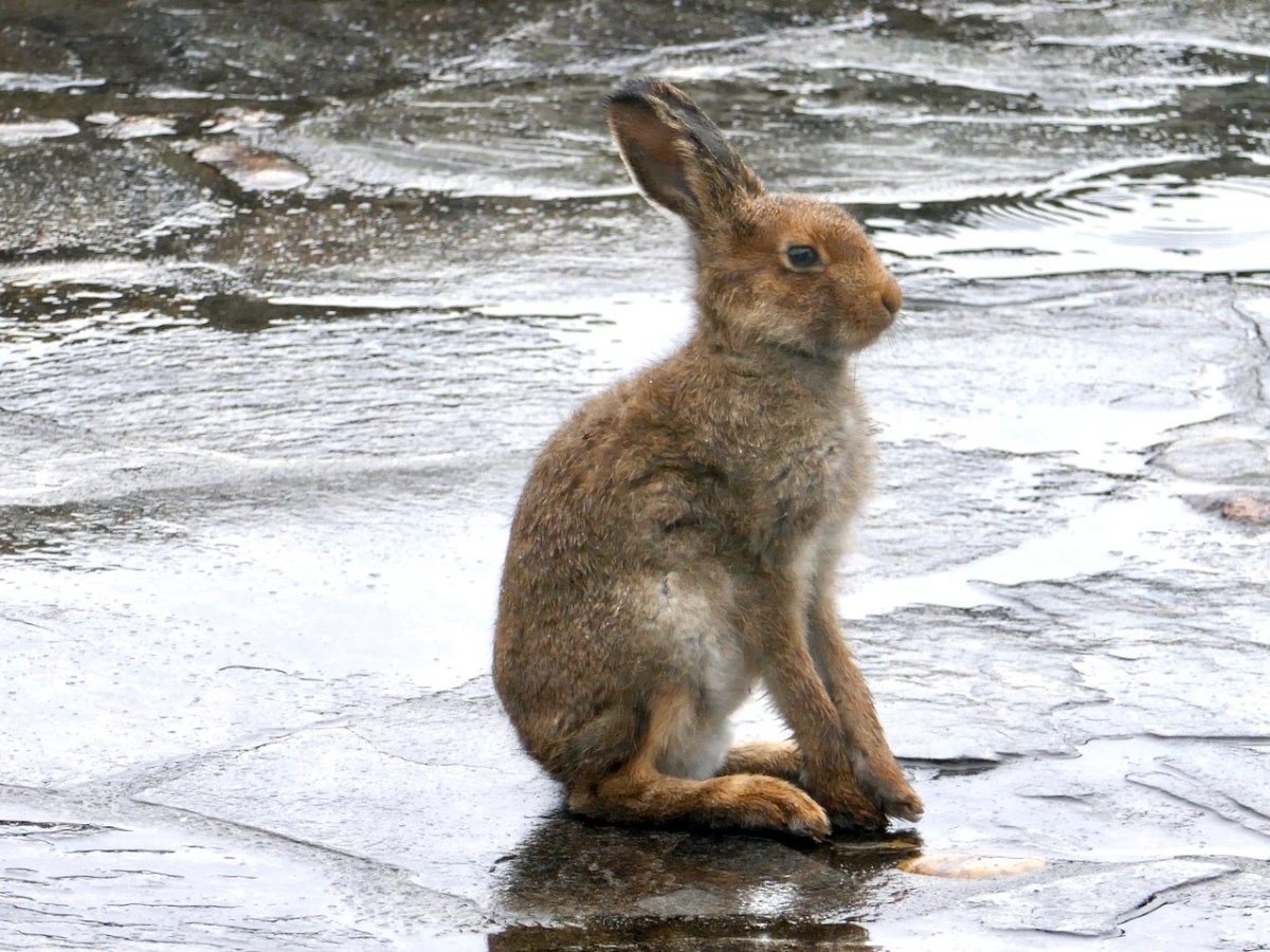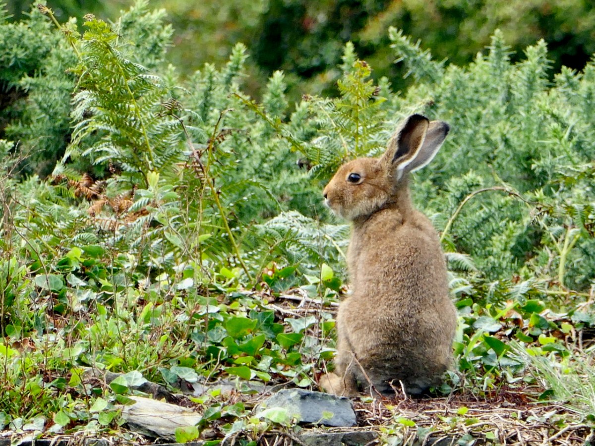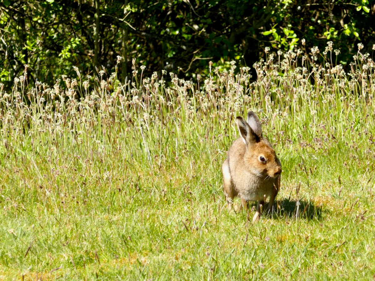 Every so often I have to come up with a post about hares – they are an obsession with me, and have been for as long as I can remember. So, when I looked out of the window this morning and saw a real, live Irish Hare foraging in our garden at Nead an Iolair I knew the time had arrived to pen another paean to this most beautiful and elusive of animals. Lepus timidus hibernicus is Ireland’s only native lagomorph; the other two are the Brown Hare and the Rabbit – both have come from elsewhere. But the Irish Hare has been here at least since the Pleistocene: that’s getting on for three million years ago, implying that the species is totally attuned to its habitat.