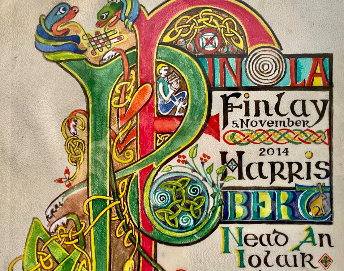 The very fine parchment scroll (above) which was made and presented to us by our neighbours Hildegard and Dietrich to celebrate our wedding has a little hare at the end of ‘Robert’!