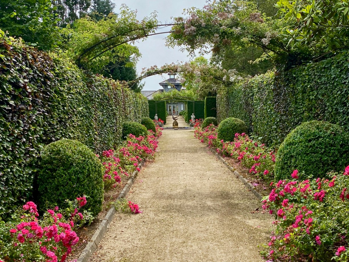 Wicklow is the Garden County of Ireland. Whenever we visit, we are impressed by the exuberance of the verdant landscapes and woodlands, and outstanding gardens abound. Do you remember our exploration of the Kilruddery Estate a few weeks ago? Here’s another venue well worth a visit: Kilquade Arboretum, formerly the ‘National Garden Exhibition Centre’. The modest 5.2 acre site is billed as the perfect escape from the stresses of everyday life – and rightly so. Not only can you wander through a collection of inspirational gardens, formal and informal, which were designed by a number of highly experienced horticulturists, but also you can eat and drink in superb outdoor dining settings: everything is well maintained and efficient. And – if you are a gardener yourself – there is a great shop to supply your every need!