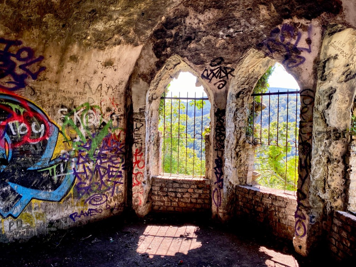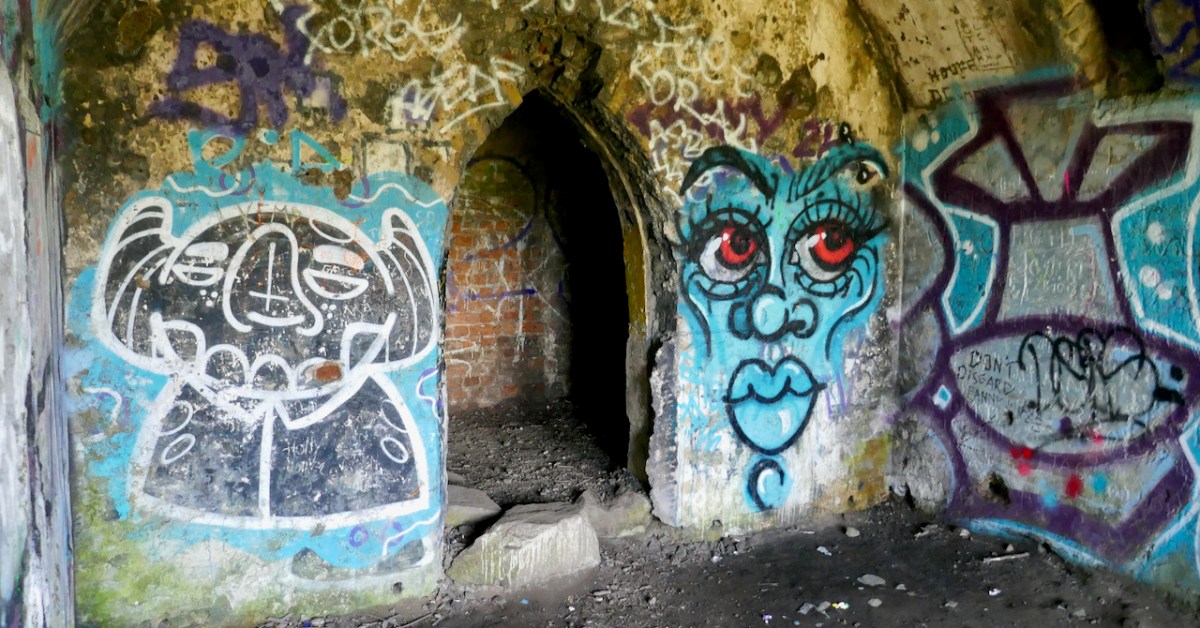 There is no doubt that the building was superbly sited to maximise the good views. Beyond that, it’s hard to fathom how the architecture functioned – and the panther on springs remains a puzzle! Over years of exposure to the elements, and inquisitive visitors, the Octagon has gained a patina of graffiti – which adds, perhaps, to its character and attributes.