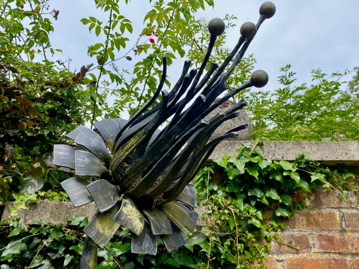 As you can see, you never know what might await you as you traverse the grounds, moving from one creative vision to another. At the height of this Irish summer – which is unmatched, so far, in its brilliant weather – you are guaranteed shady nooks and surprises, and plenty of places to rest and contemplate. You will happily spend half a day or more at Kilquade, and come away satisfied in body and mind! Here’s an enigmatic sculpture by Fiona Coffey: