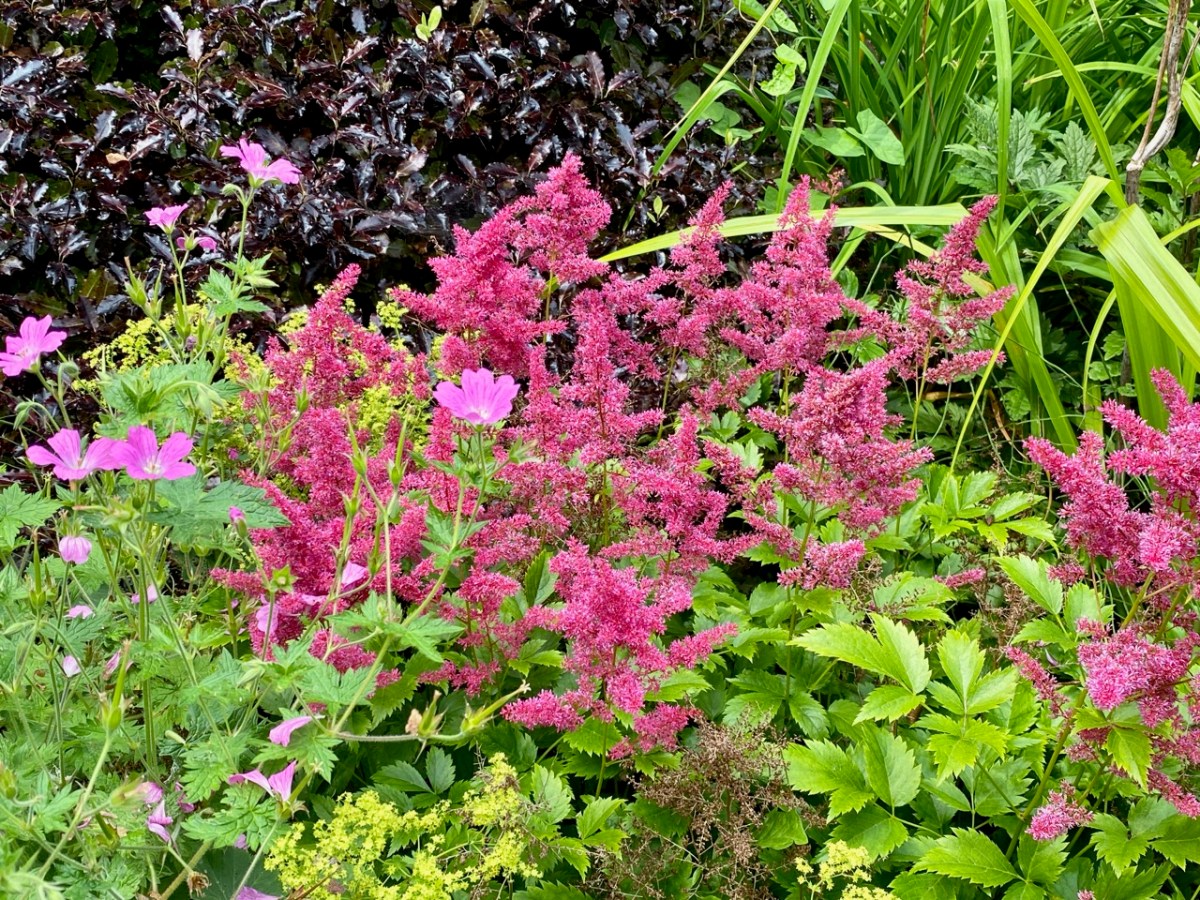 I haven’t mentioned the profuse planting that veers between formal and – as you can see – naturally wild. Finola is particularly pleased to see the latter: she firmly believes that wildflowers have a big part to play, nowadays, in any established garden: have a look at our post on West Cork’s Bantry House Gardens, here. Allowing nature to contribute to established planting schemes will ensure that good habitats evolve to support our pollinators and a balanced eco-system.