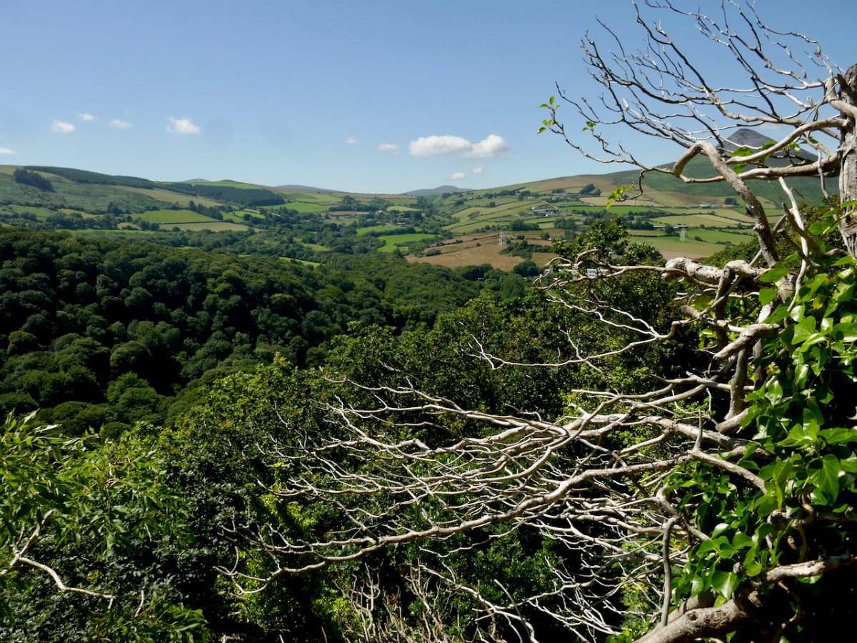 Hidden away in the oak wood is a remnant of the once vibrant La Touche estate: today it’s known as ‘The Octagon’ because of its shape. Its purpose originally was a banqueting hall, set high up on a platform looking out over the landscape. It must have been quite an undertaking, bringing food, furnishings and serving staff up from the ‘big house’: there are remains of tunnels said to have been used for this purpose. Most intriguingly . . .