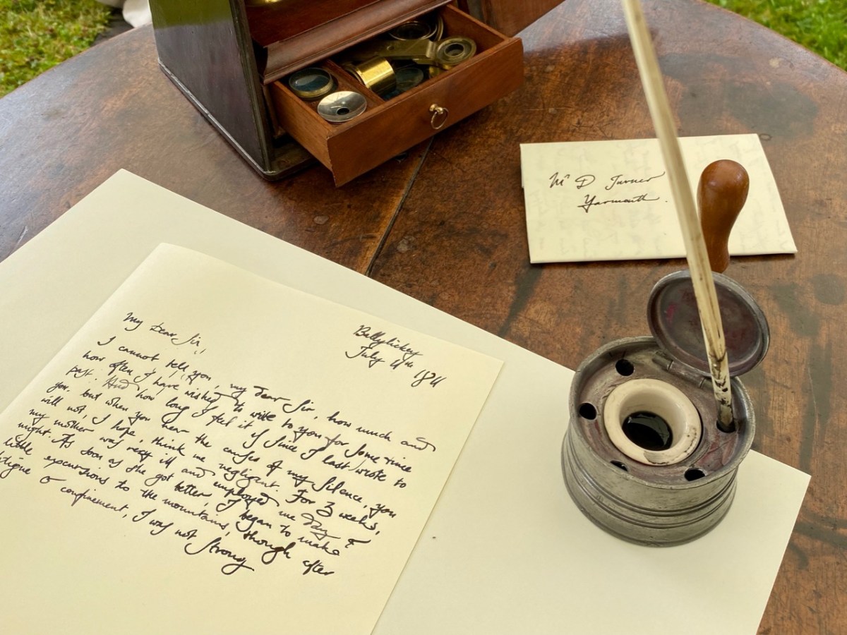 As the reading of the letters progressed it became gradually obvious that a deep friendship was developing between the two botanists, and the language reflected this. Particularly telling (and this was drawn out in the selection of the letters) was the way the missives were framed as time went on. From a simple, almost curt formality in the earliest, we begin to read how their shared interests extended beyond the botanical; they exchange newly discovered poetry; Dawson tells Ellen that he has named his newly-born daughter after her; they imagine how they would like to meet each other and walk their favourite landscapes together. Each sends the other packages containing examples of the plants and seaweeds that preoccupy them, and their greetings at the top and tail of every page become increasingly warmer. We, the audience, open our imaginations as to how a happy fulfilment could ever metamorphose – West Cork and Norfolk are as far apart as any two place could be in early 19th century Britain. Poignantly, we learn that they never met: Ellen – always in poor health – died in 1815 at the age of twenty nine. We can only imagine that Dawson, remote in Norfolk, was desolate.