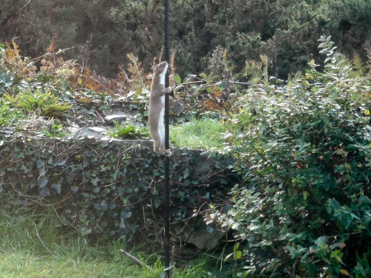 This morning, Finnbarr was absent from the garden. I did catch a glimpse of him wandering the distant pastures – forlorn and bereft. At least, those are the feelings my human soul projects onto him. He will find another mate, of course, and we hope they will continue to share our little bit of paradise. We will keep a lookout for unwelcome visitors, but we will always have to pay our respects to the ‘weasels’. If our stoat does return we will have to honour him with an Irish name: I am inclining towards Fiáinín – which means Little Wild One.