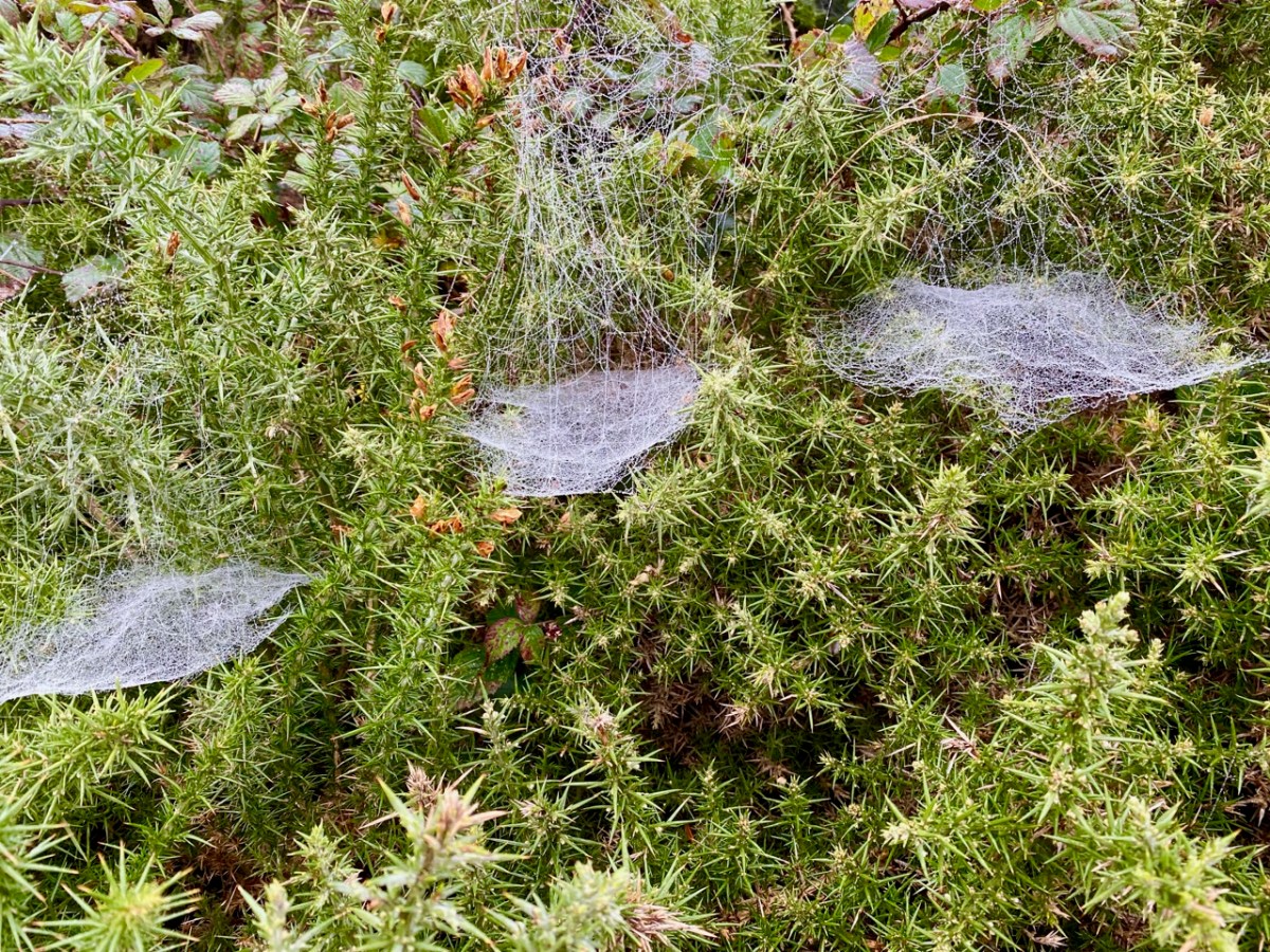 We are past November Dark – traditionally a ‘low’ time of the year when the effects of the approaching cold months begin to displace autumnal skies and spectacular sunsets: the term traditionally refers to the appearance of the new moon of the month (which happened this year on the 4th), but is probably inspired by the preceding nights when no moon is visible. For us at the moment, on the shores of Roaringwater Bay, the dark time is emphasised by a constant pervading mist which clings and covers everything in films of moisture, especially the myriad cobwebs on the gorse bushes which surround us. Gone – for now – are our fine views out across to the islands, and there is a feeling of being marooned and suspended in a lifeless grey tract which encompasses sea and sky.