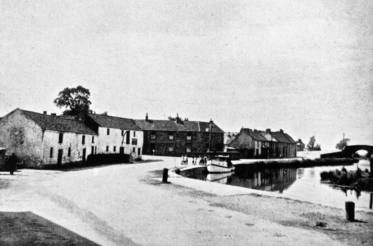 The upper photograph was taken by Angela Rolt in 1946: it shows the Rolt’s boat moored up in sleepy Robertstown (Grand Canal), receiving the attentions of a crowd of small children who had never seen a pleasure cruiser before. Below that is the photo of Robertstown we took in 2016, seventy years later. Our own travels in that year, however, omitted the Rolt’s journey through Dublin, when they had to pass across the Liffey and Dublin Port to get from the Grand Canal to the Royal Canal. The header is an extract from a 19th century map of the docks area in Dublin.